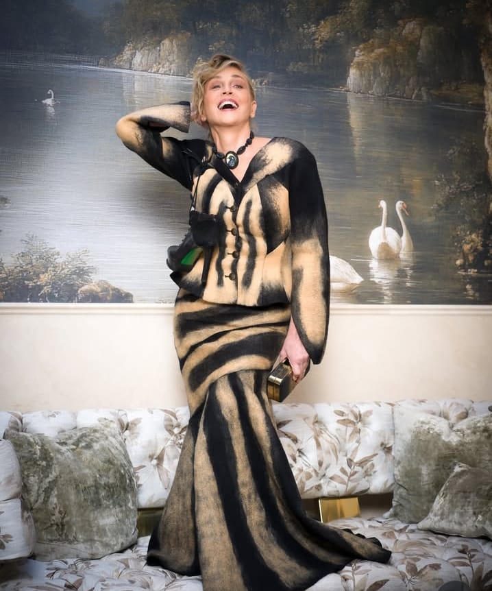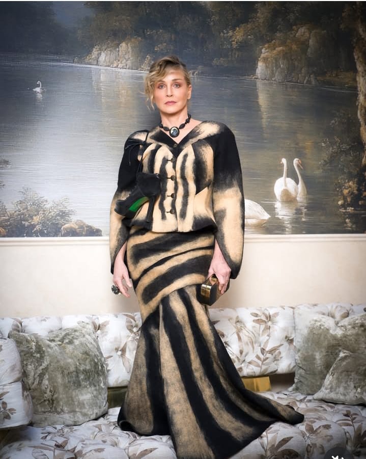 إطلالة شارون ستون في هذه الأمسية لم تكن مجرد خيار أزياء، بل امتدادًا لشخصيتها: أناقة ناضجة، حضور واثق، ورسالة فنية متكاملة.
