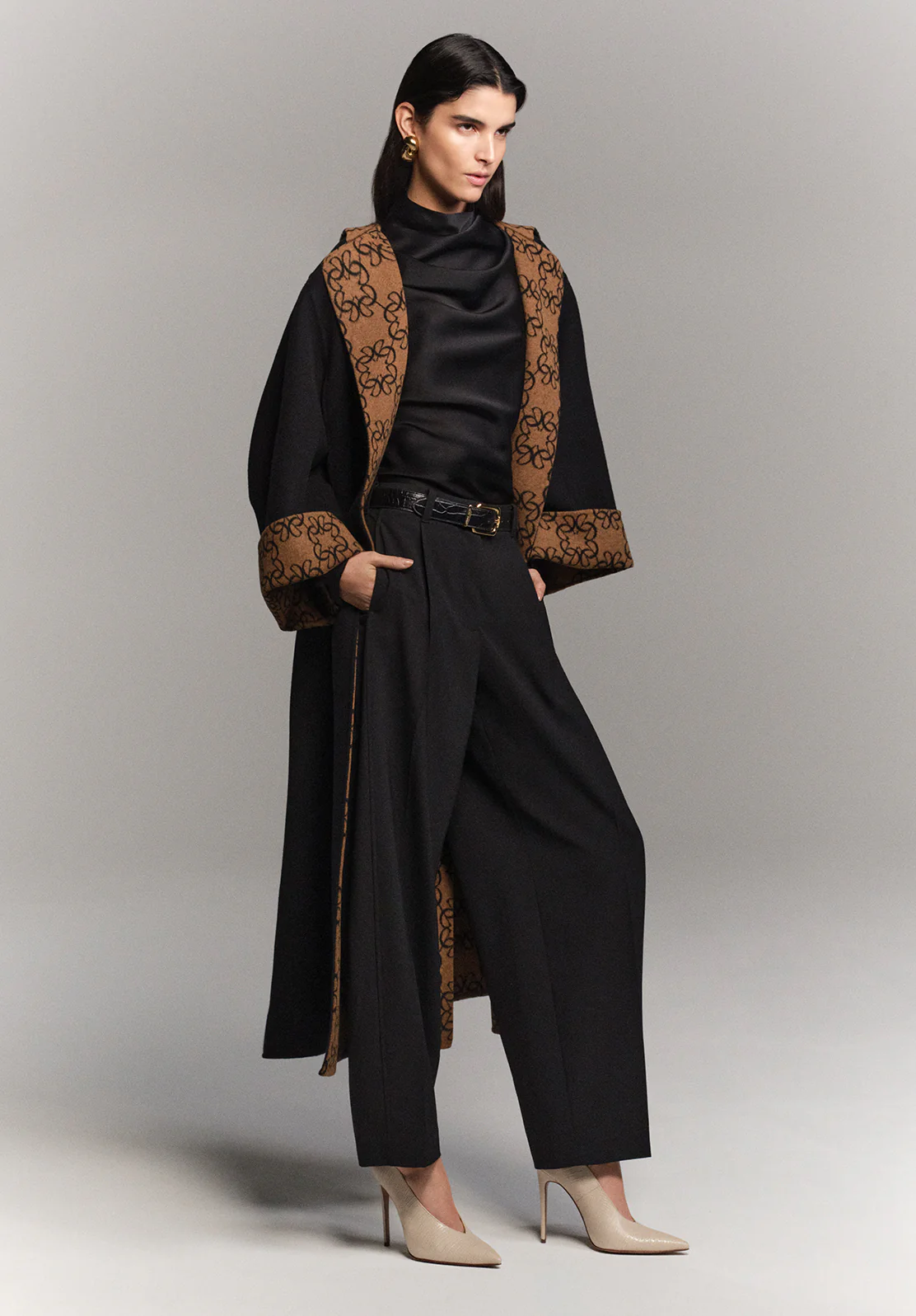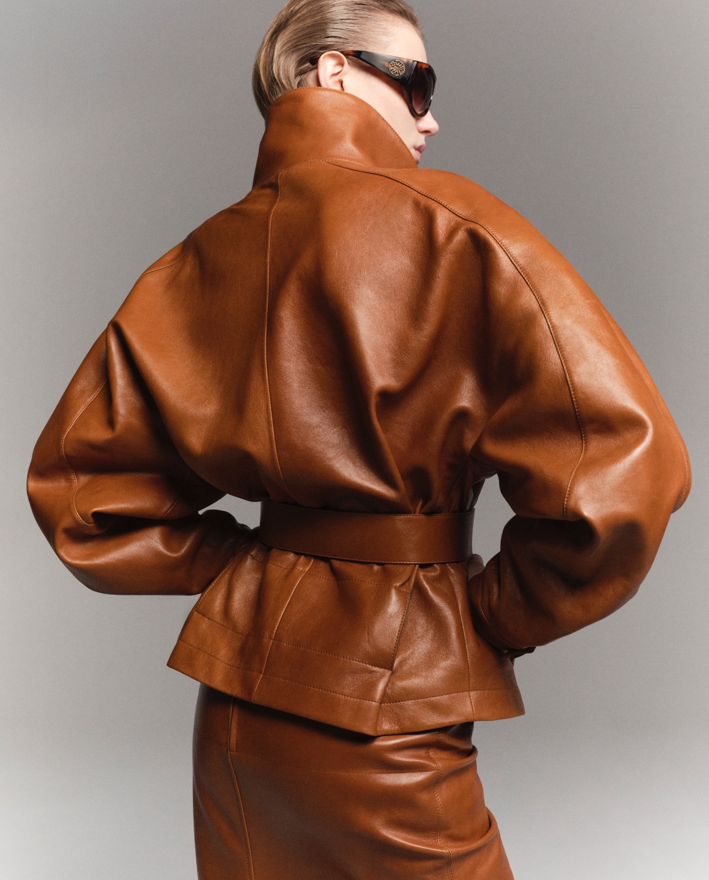 مجموعة تتقدم أمام السماء بخطوط تفصيل عصرية جريئة، متألقة بثقة قوية وواثقة. ومع ارتفاع الشمس، يظهر الجلد الحريري بلون القرفة، ليضيف لمسة من الرقة والنعومة على المظهر الصارم. مزيج من الياسمين والملح، النعناع والدخان، الهيل والخرسانة: جمال قائم على التناقضات المثيرة. في سترة زيتونية وبنطلون دنيم مزخرف، تمزج بين الفخامة الكلاسيكية والحس المعاصر. وفي فستان متوسط الطول بطبعات دقيقة، مع أحذية سوداء طويلة وحقيبة يد متناسقة، تجمع بين الحيوية والأناقة. كل تفاصيل هذه التصاميم توازن بين القوة والرقة، بين الصلابة والأنوثة، فتجسد أناقة عصرية حسية ومتعددة الأبعاد.