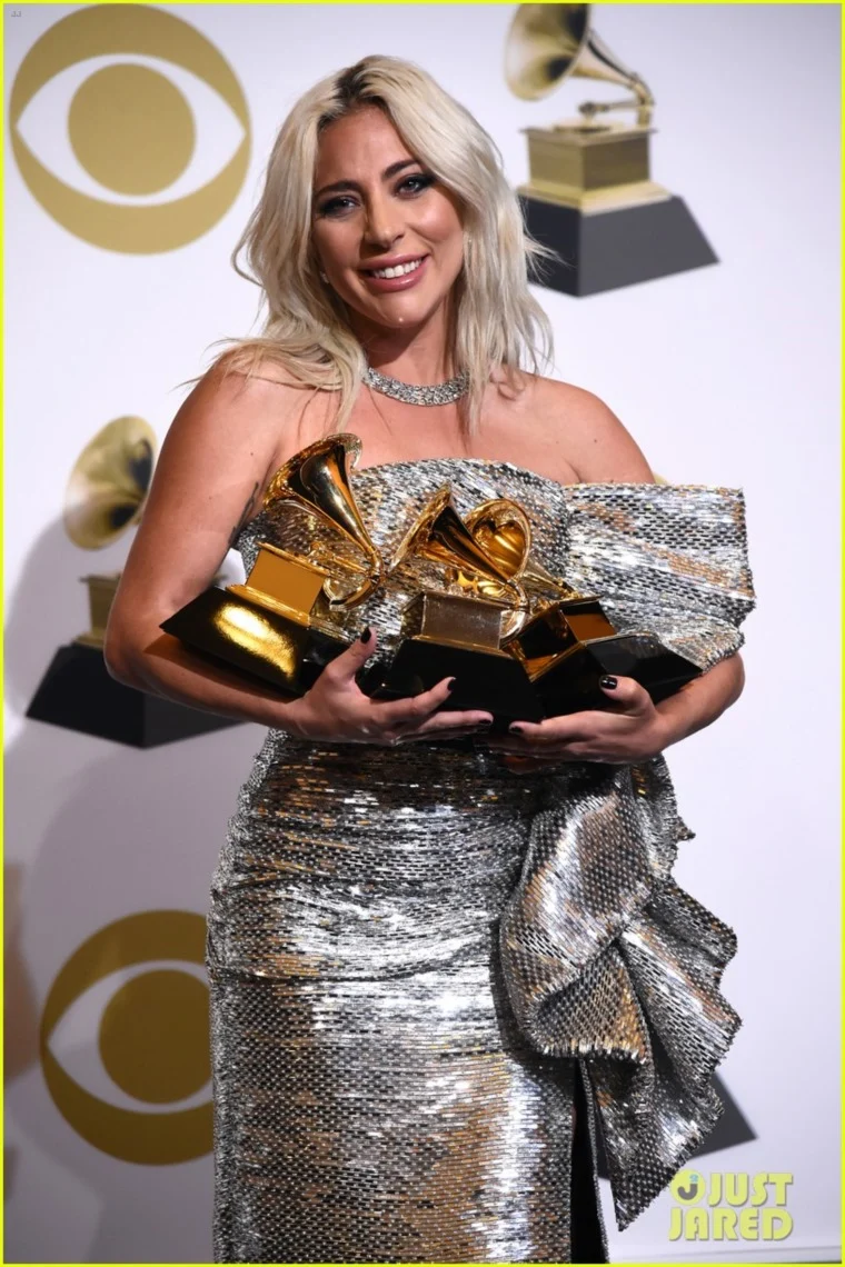 من جانب آخر، جاءت النجمة ليدي غاغا في المركز الثاني من حيث عدد الترشيحات بـ7 فئات، محققة رقمًا قياسيًا جديدًا في مسيرتها الفنية، بعد أن نافس ألبومها "مايهم" في جميع الفئات الكبرى، بما في ذلك تسجيل العام وأغنية العام.