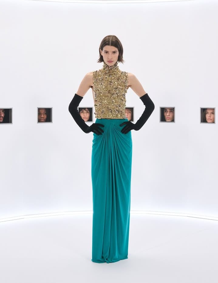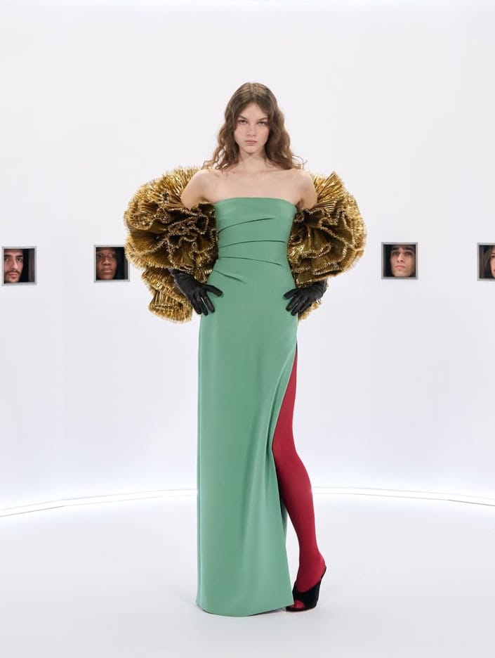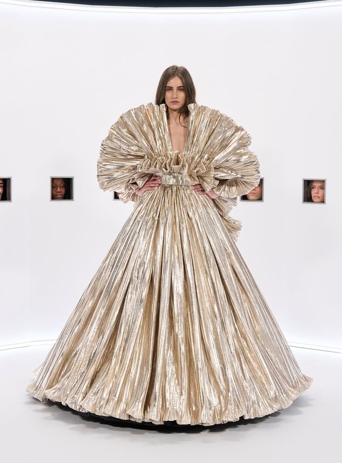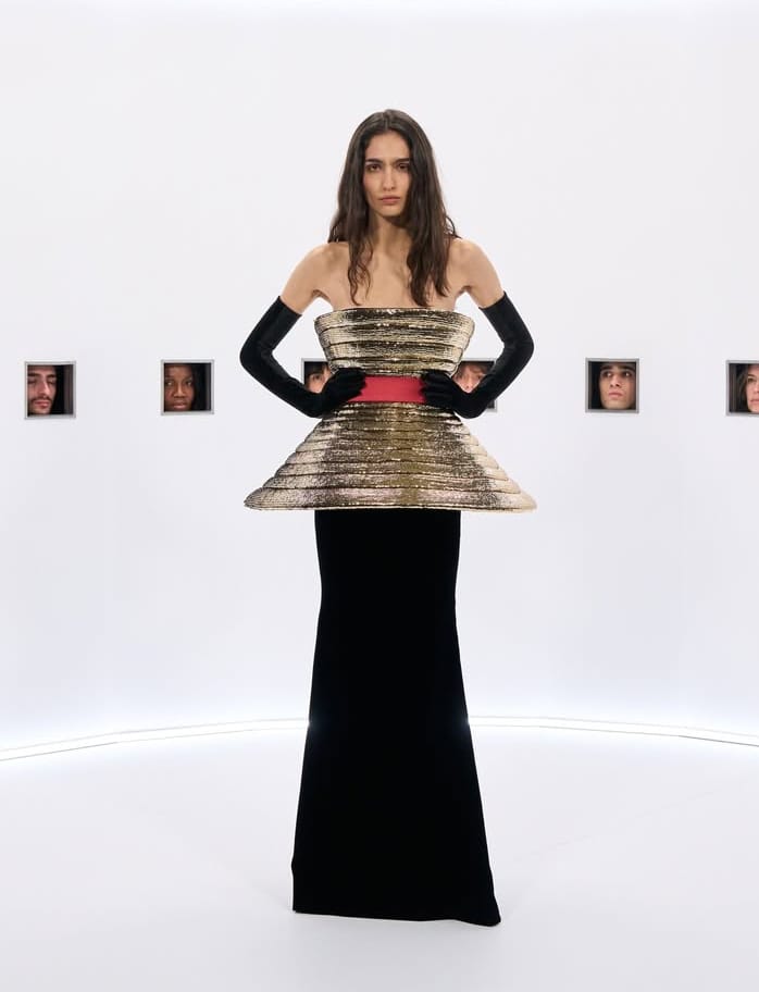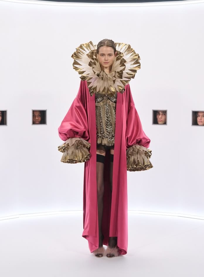 تحت عنوان Specula Mundi — أي “مرآة العالم” باللاتينية — قدّم ميشيل رؤيته للأزياء الراقية بوصفها ترفاً حميمياً وفروسية مكتملة، حيث يلتقي التبجيل بالإفراط المسرحي.