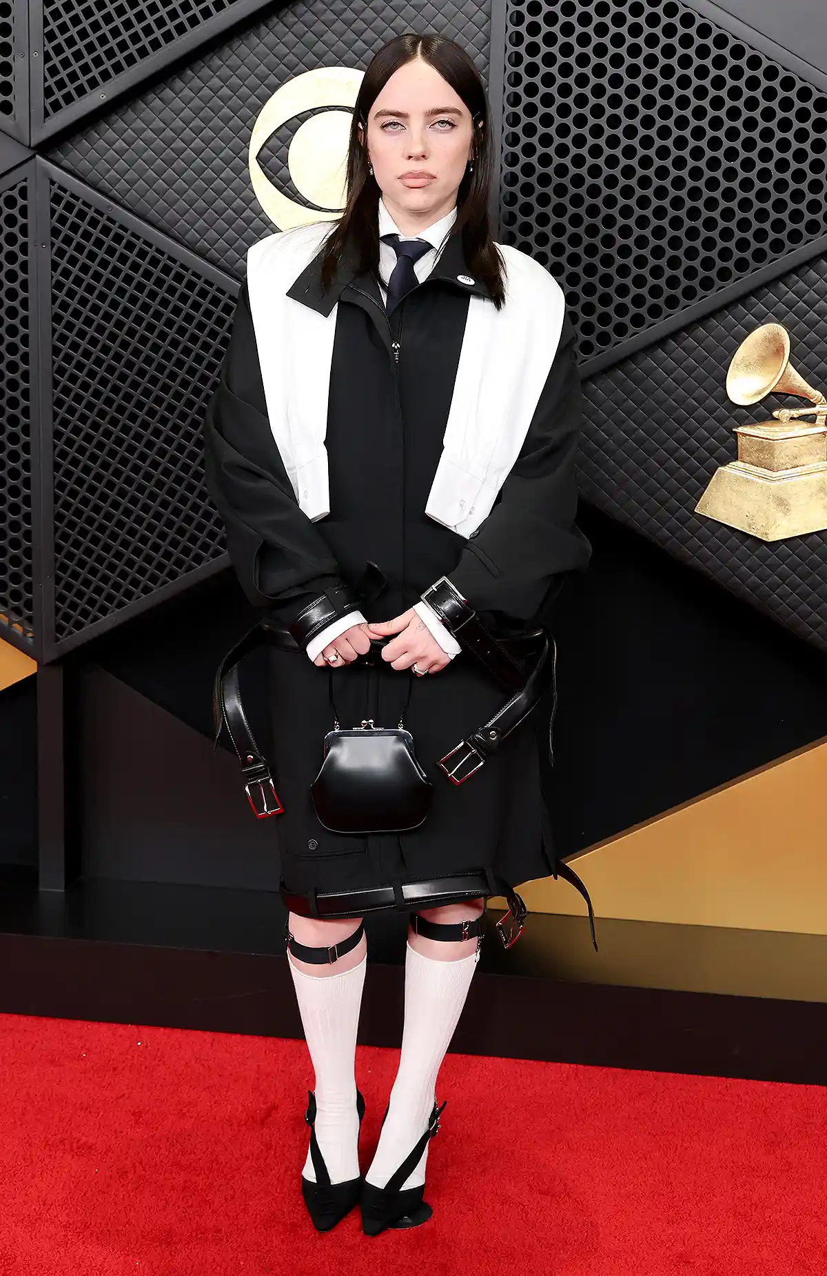 Lady Gagaبظهور قوي في فستان أسود شاهق التفاصيل، ينسجم مع روح المسرح والأداء المتوقع منها.