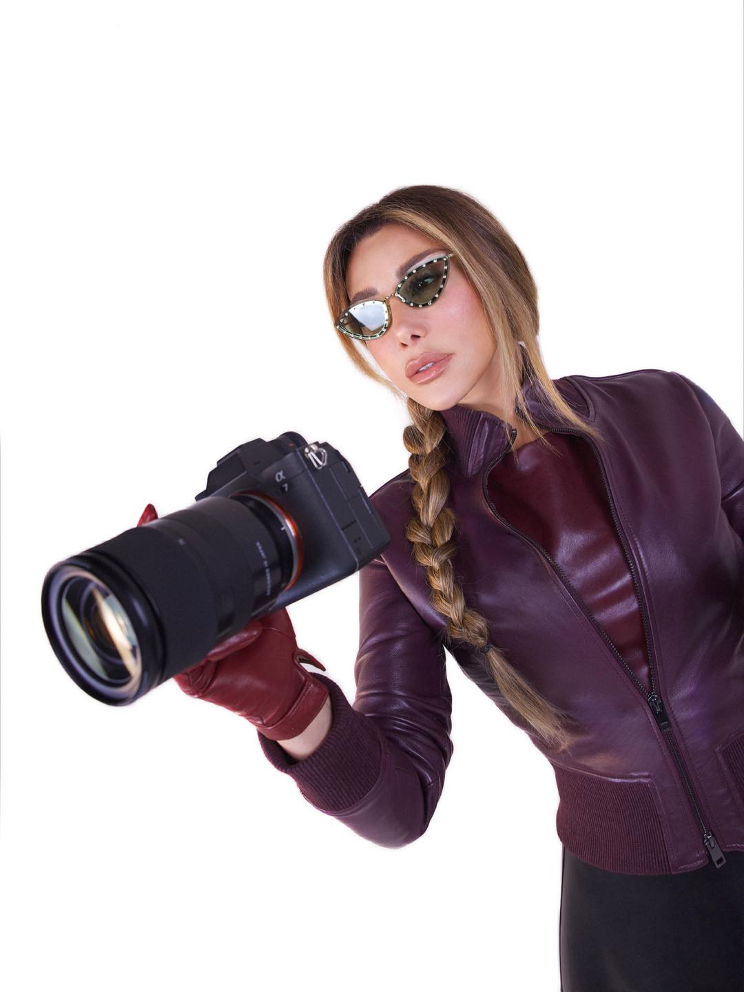 اختارت نجوى الجلد ليكون لغتها البصرية، في إطلالة تحمل الحزم والصلابة من دون أن تفقد أناقتها. تناغم البرغندي بتدرجاته بدا لافتًا: