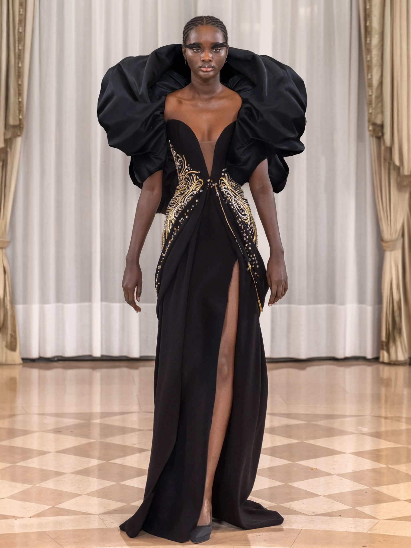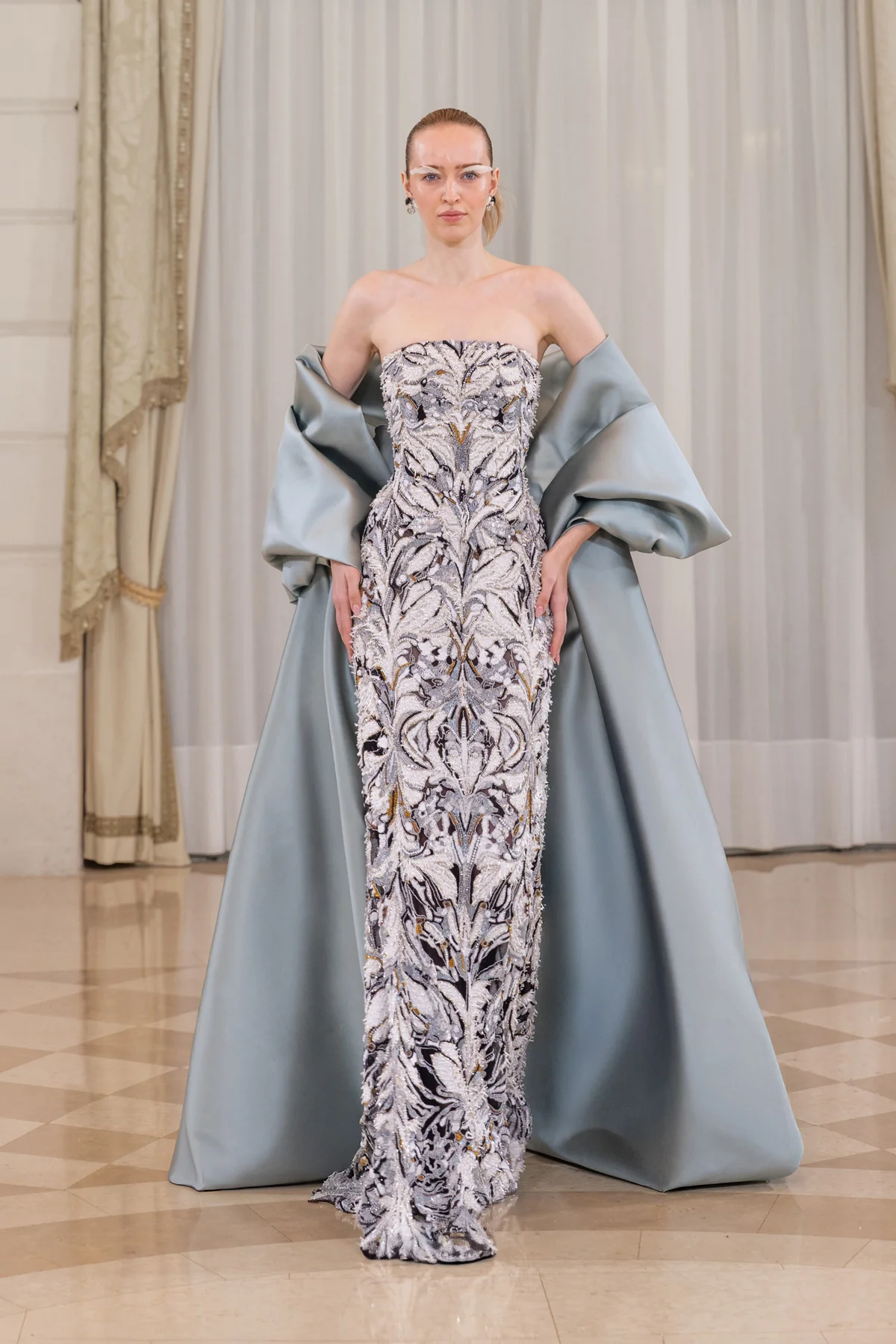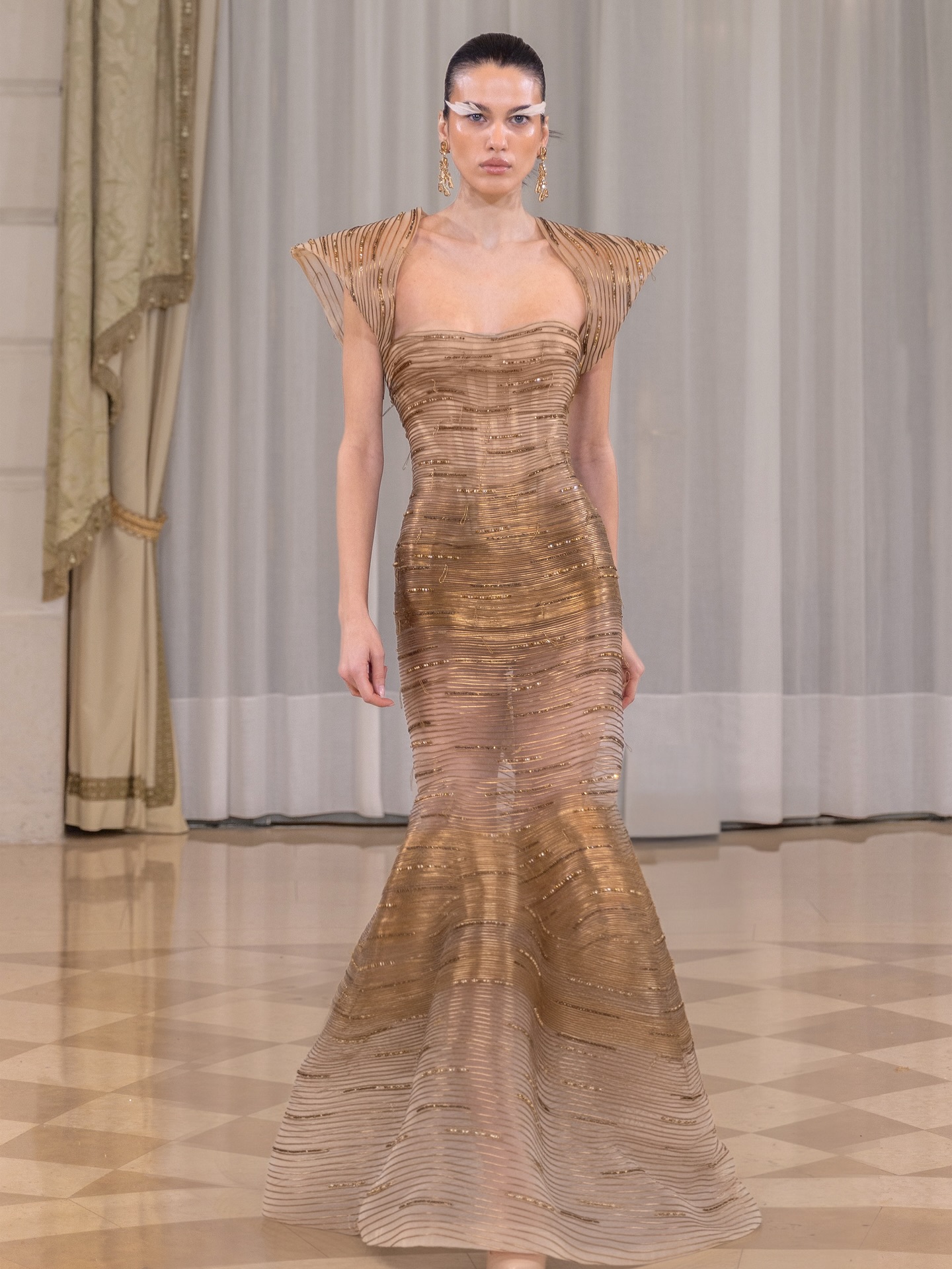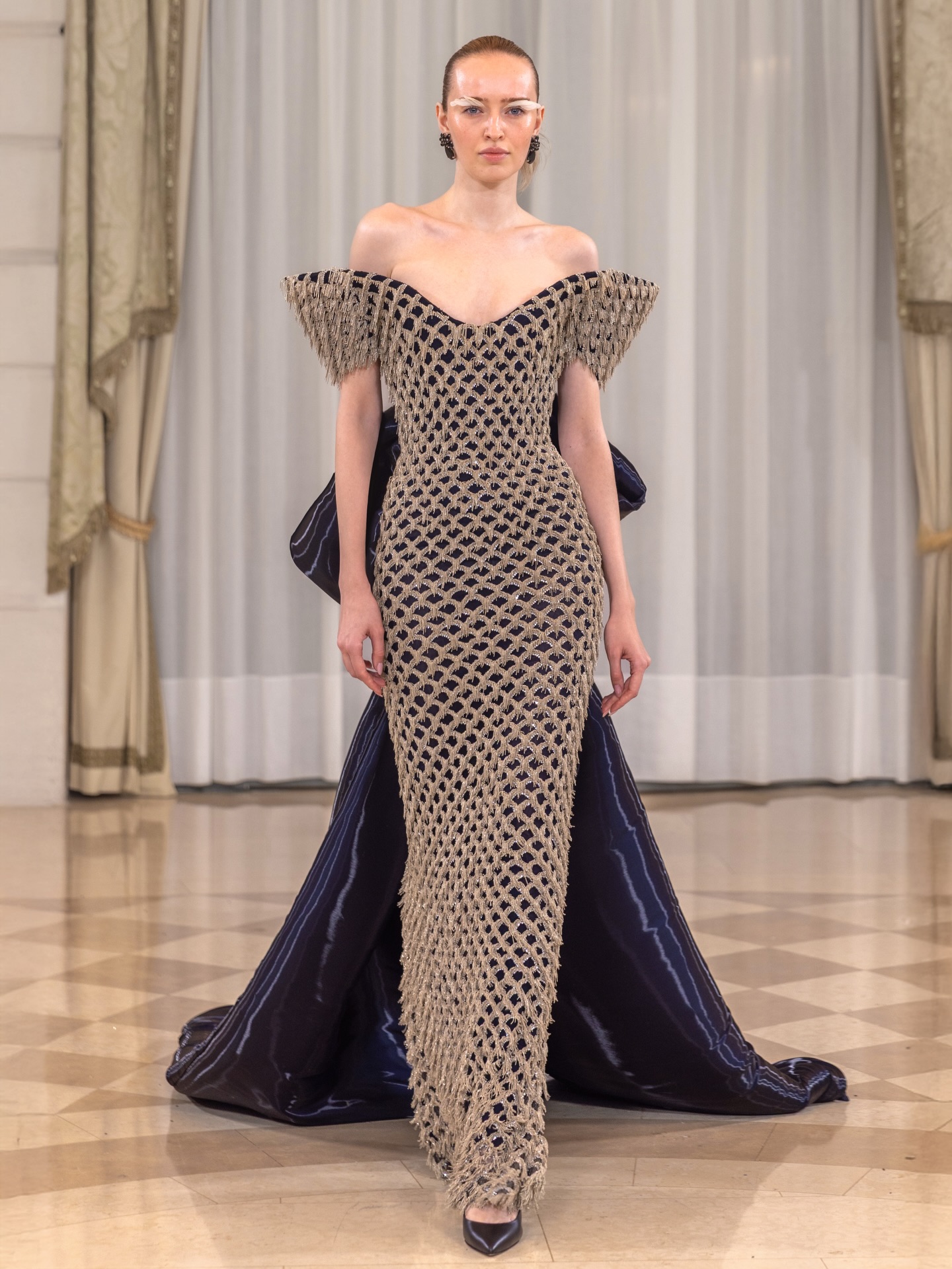 التفاصيل اليدوية الدقيقة في التطريز والترصيعات تظهر في كل قطعة، كأنها توقيع فريد يضيف بعدًا من العمق والصدق الفني. الحرفية هنا لا تسعى إلى لفت الانتباه بذاتها، لكنّها تُبرز القيمة الحقيقية للـ«هوت كوتور» في عالم يكثر فيه التقليد.