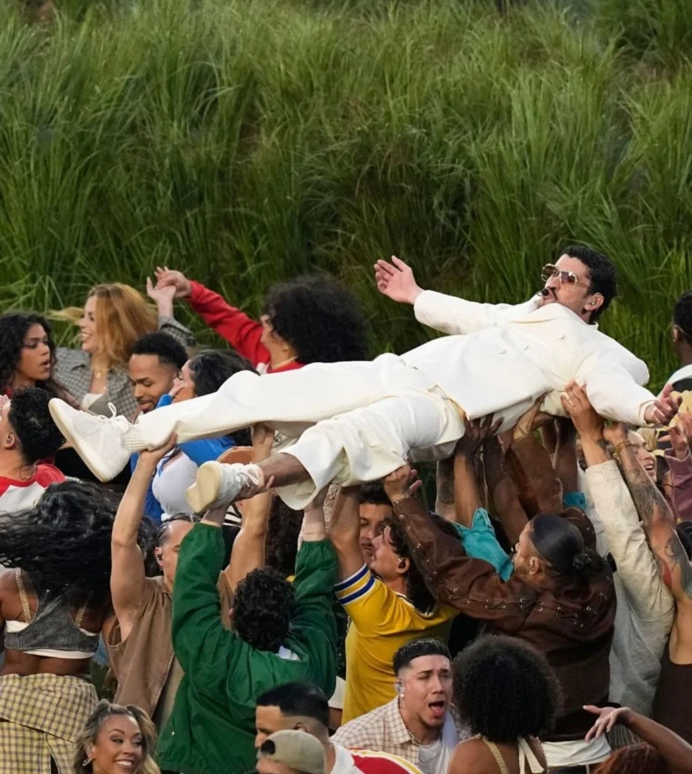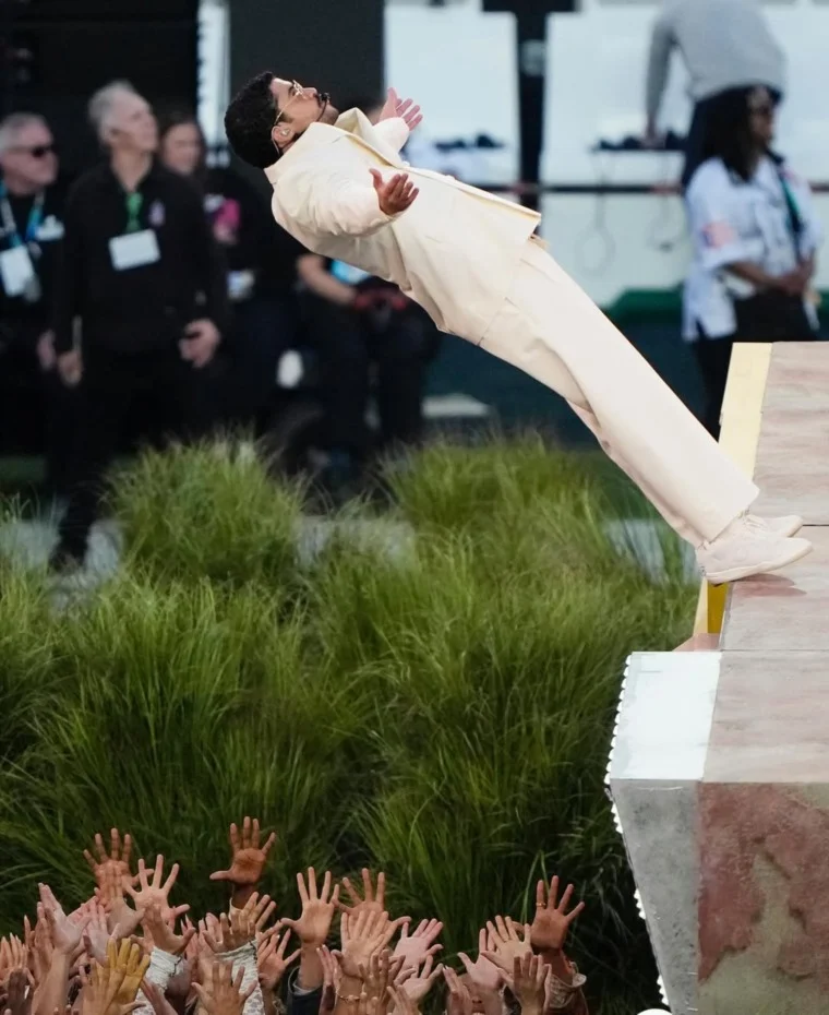 في المقابل، حمل عرض باد باني دلالات رمزية قوية وردوداً غير مباشرة على سياسات الإدارة الأمريكية، حيث تعمد تقديم فقراته باللغة الإسبانية واستعراض أعلام وأسماء دول من أمريكا الشمالية والوسطى والجنوبية. وهدف الفنان من خلال هذه الخطوة إلى التأكيد على أن مفهوم "أمريكا" يتجاوز حدود الولايات المتحدة ليشمل قارتين وشعوباً متعددة، مختتماً عرضه بعبارة "ليبارك الله أمريكا" قبل أن يعدد أسماء الدول اللاتينية في رسالة وحدة ثقافية واضحة.