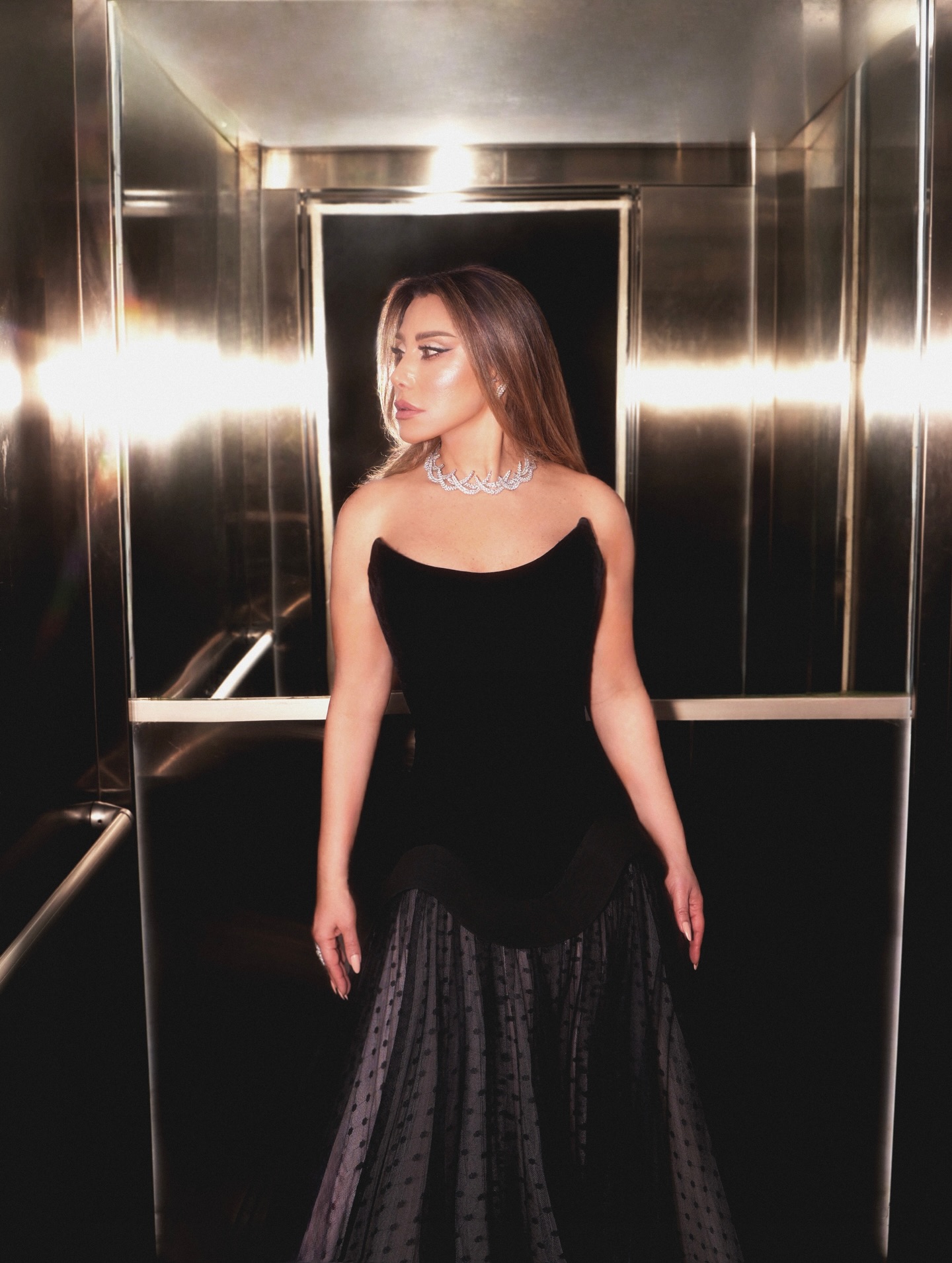 نسّقت نجوى إطلالتها بعقد ماسي كبير من توقيع Yeprem زيّن عنقها وأضفى لمسة فاخرة من دون مبالغة.