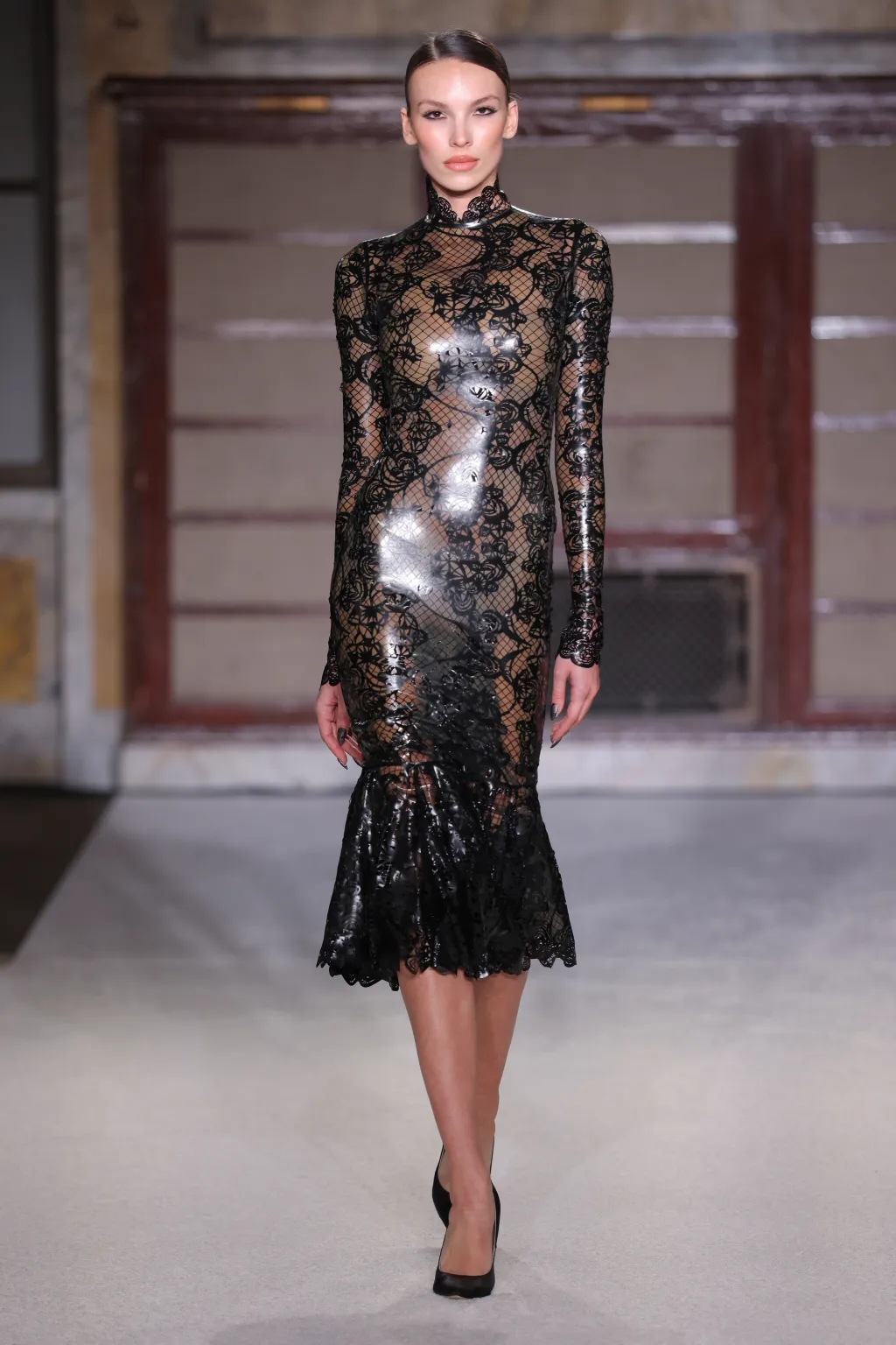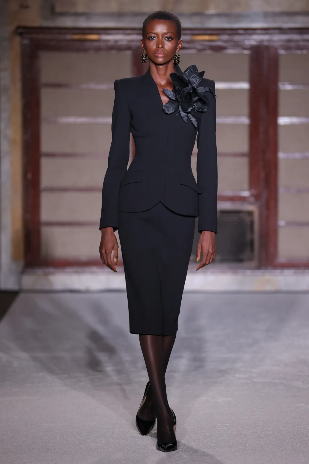 استلهم هدسون روح مجموعته من هيبة وعظمة مغنيات الأوبرا السود الأسطوريات، وفي مقدمتهن ليونتين برايس، كما استدعى الحضور الطاغي لملكة الروح أريثا فرانكلين. هذا المزج بين الفن الرفيع والسطوة المسرحية تجلى في تصاميم عكست أنوثة حادة ودراما بصرية مدروسة، حيث بدت كل عارضة وكأنها تؤدي دور البطولة في عرض أوبيرالي مهيب، مما حول المدرج إلى منصة للسرد القصصي والشموخ الأنثوي.