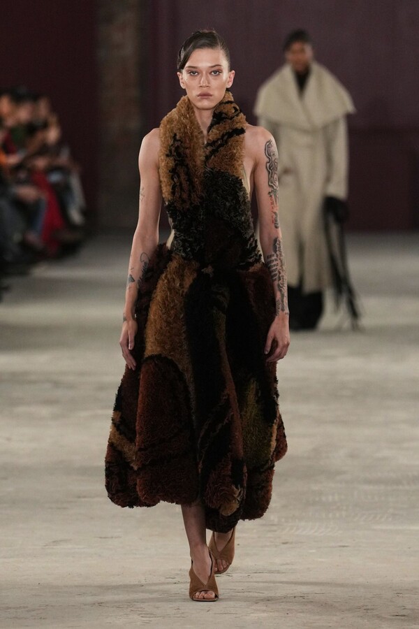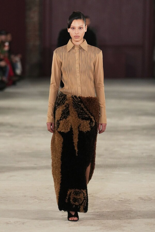 أما على منصة العرض، فقد قدمت المصممة راشيل سكوت مجموعة استلهمتها من أعمال الفنان "ويلفريدو لام"، محولةً لوحاته إلى "هندسة ملابس". لم تكن الأزياء مجرد قطع قماش، بل كانت أشبه بـ "جلود ثانية" تعانق الجسم.
