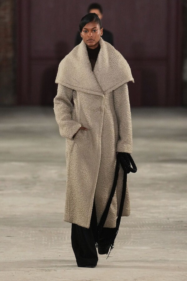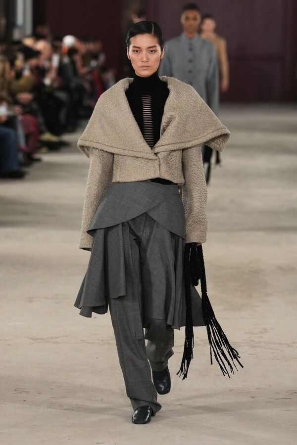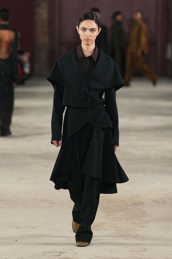 شهد هذا الموسم تطوراً ملحوظاً في فن الخياطة لدى "ديوتيما". رأينا معاطف "الألباكا" الفاخرة المزدانة بياقات تحاكي الفراء بذكاء، والتنانير التي تدمج في قصاتها تفاصيل البنطال، مما يمنح المرأة حرية الحركة دون فقدان الأنوثة.