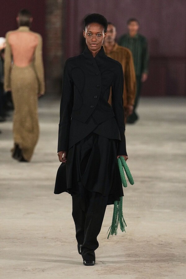 وكعادتها، حافظت العلامة على هويتها المرتبطة بالحرف اليدوية، من خلال تقنيات الكروشيه الجامايكي التقليدي والحياكة الدقيقة. واللافت هذا العام هو البعد الإنساني للعرض، حيث تعاونت سكوت مع "Refugee Atelier" في نيويورك، لتدمج مهارات الحرفيين اللاجئين في قطع المجموعة، مما جعل من كل ثوب قصة أمل وصمود.