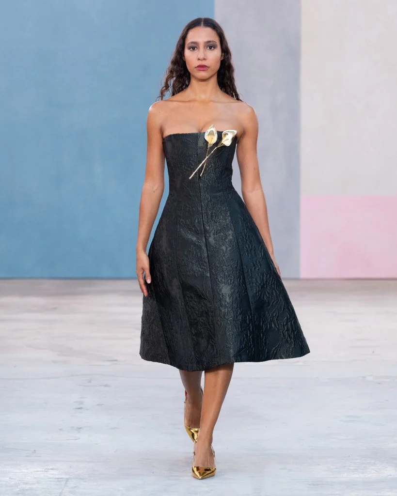 عادت رموز الدار الطباعية لتؤكد هوية Carolina Herrera، من جاكار جلد النمر الجريء إلى زهور الكالا المرسومة بأسلوب فني، وصولاً إلى طبعات الخشخاش المزهرة على قماش الأورغانزا الشفاف. هذه الطبعات تعكس تلاقي القوة مع الرقة.