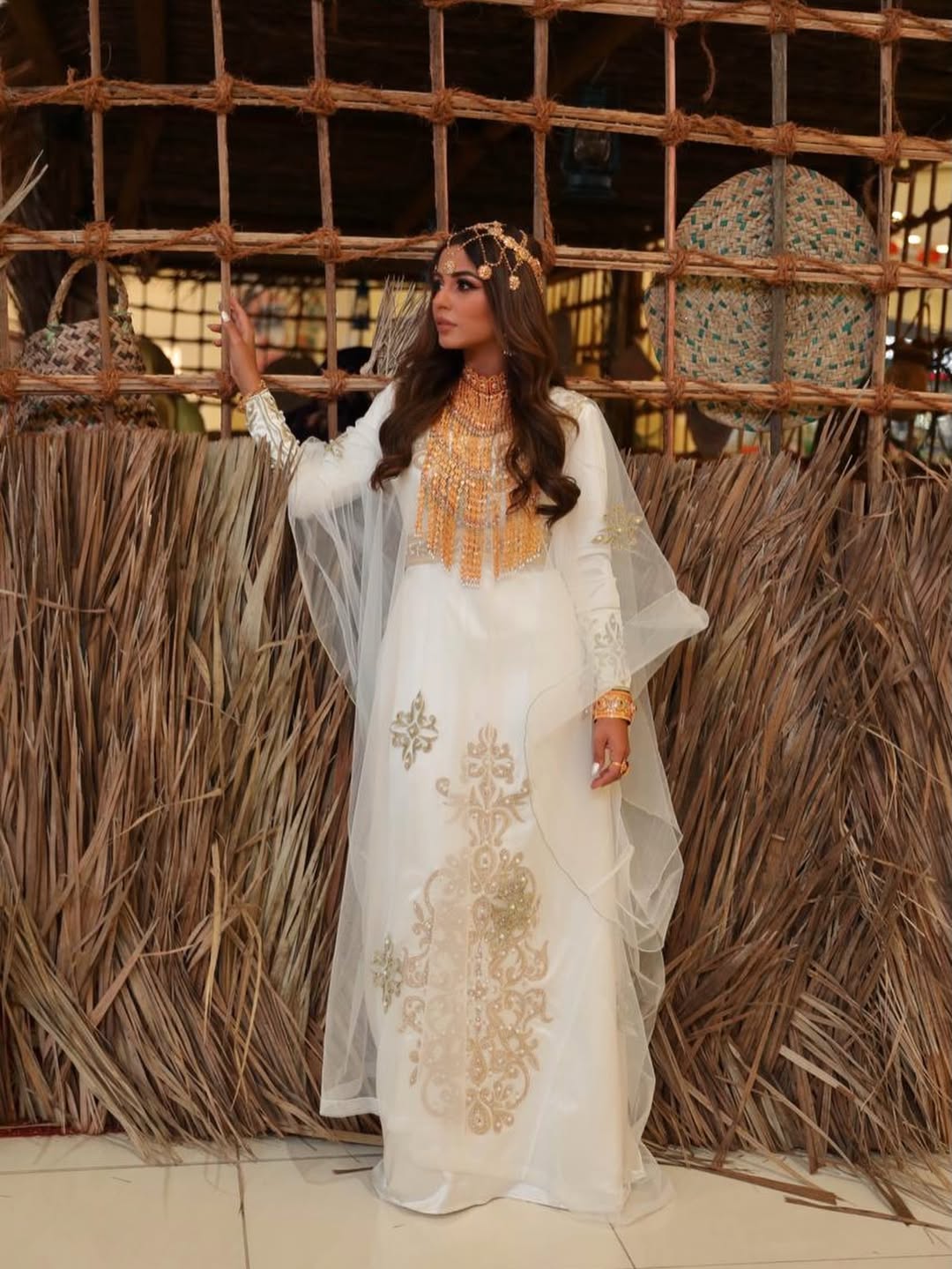 حين ترتدي مهيرة العباءة، تبدو وكأنها تعيد كتابة الأناقة الشرقية. الأزرق الفاقع يمنح الإطلالة طاقة نابضة وحيوية لافتة، بينما الأبيض يهمس بالنقاء والسكينة. بين اللونين، مساحة واسعة من الأنوثة الهادئة التي تناسب أمسيات رمضان، حيث يلتقي التراث بروح عصرية خفيفة.