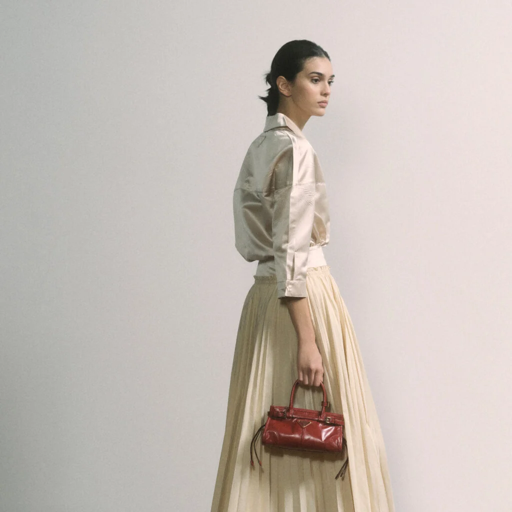تقترب برادا Prada من رمضان والعيد بفلسفة هادئة تقوم على ضبط النفس والأناقة الرصينة. الظلال نحيفة وسلسة، والتصاميم تشمل التنانير المطوية، وفساتين البوبلين الأنيقة، وقطعاً خفيفة من Re-Nylon تمنح لمسة عصرية. لمعة خفيفة في الأقمشة تلتقط الضوء بما يكفي للحظات الاحتفالية.