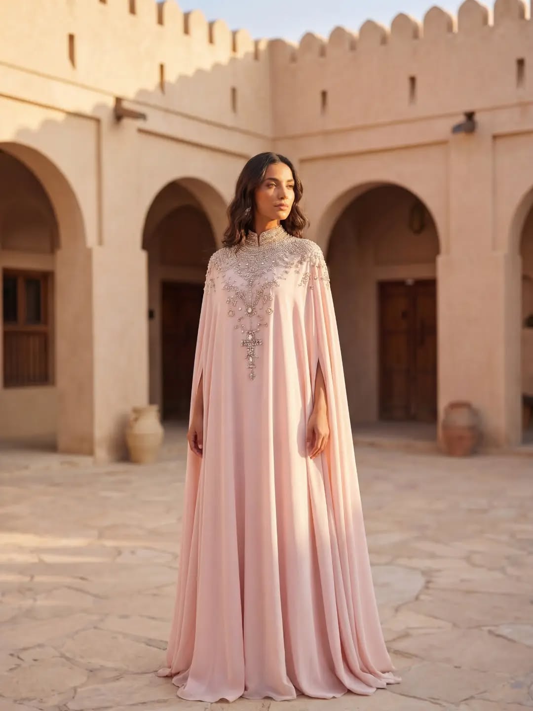 التفاصيل هي ما يميز المصمم المبدع، وهذا ما تجلى في العبايات والقفاطين المطرزة. ركزت المجموعة بشكل استراتيجي على منطقة الصدر والياقة، حيث نُفذت تطريزات يدوية دقيقة بخيوط الحرير والخرز المجهري. هذا التوزيع المدروس للتطريز منح التصاميم ثقلاً فنياً دون مبالغة، مما جعل كل قطعة بمثابة "مجوهرات قماشية" تغني السيدة عن قطع الإكسسوار الكبيرة.
