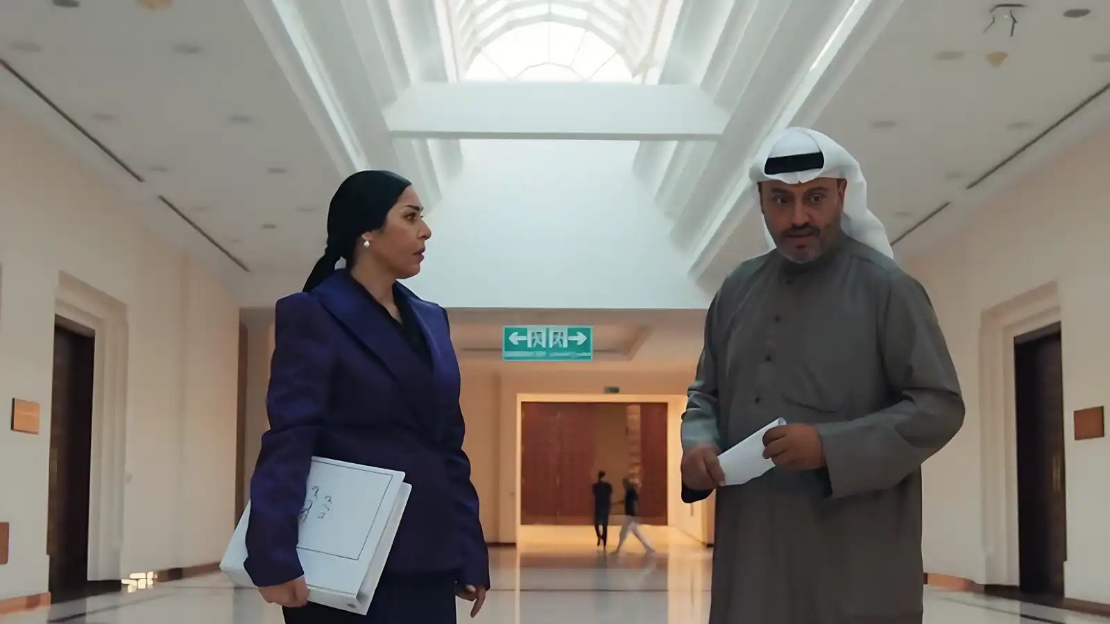 في خط درامي موازٍ، تتلقى سلوى، التي تؤدي دورها نور الدليمي، معلومات صادمة من أحد زملائها تفيد بأن قرار إحالتها إلى التقاعد لا يرتبط بالرغبة في تجديد الدماء كما أُعلن رسمياً، بل بشبهات مناقصات مشبوهة يُقال إن شقيق زوجها سعود متورط فيها.