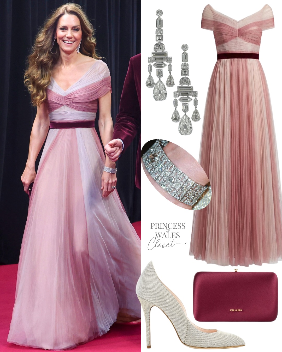 في واحدة من أكثر لحظات السجادة الحمراء رقيًا هذا الموسم، تألقت أميرة ويلز بفستان وردي شفاف الطبقات بتدرجات ترابية، أبرز الخصر والكتفين بقصّة انسيابية رومانسية تعكس هويتها الأنيقة الهادئة.