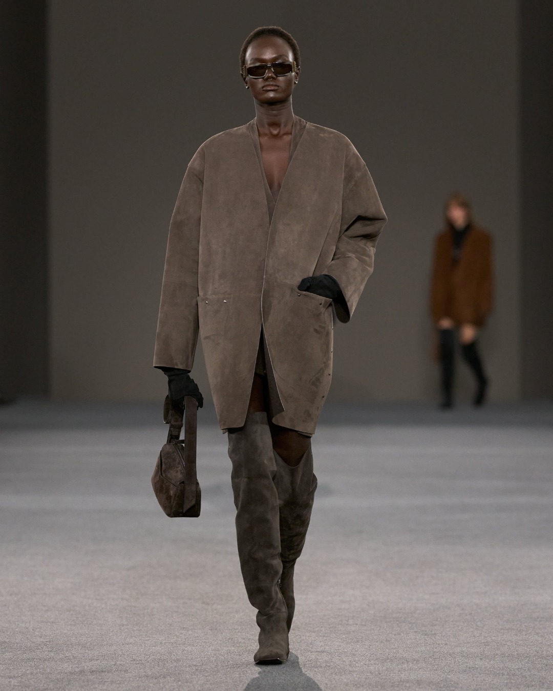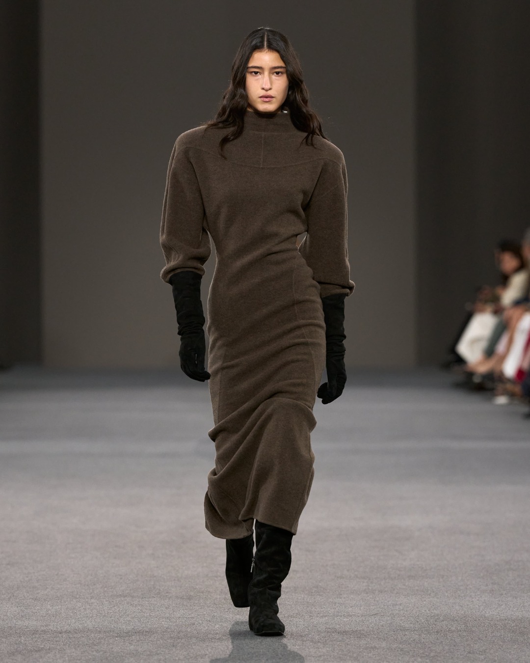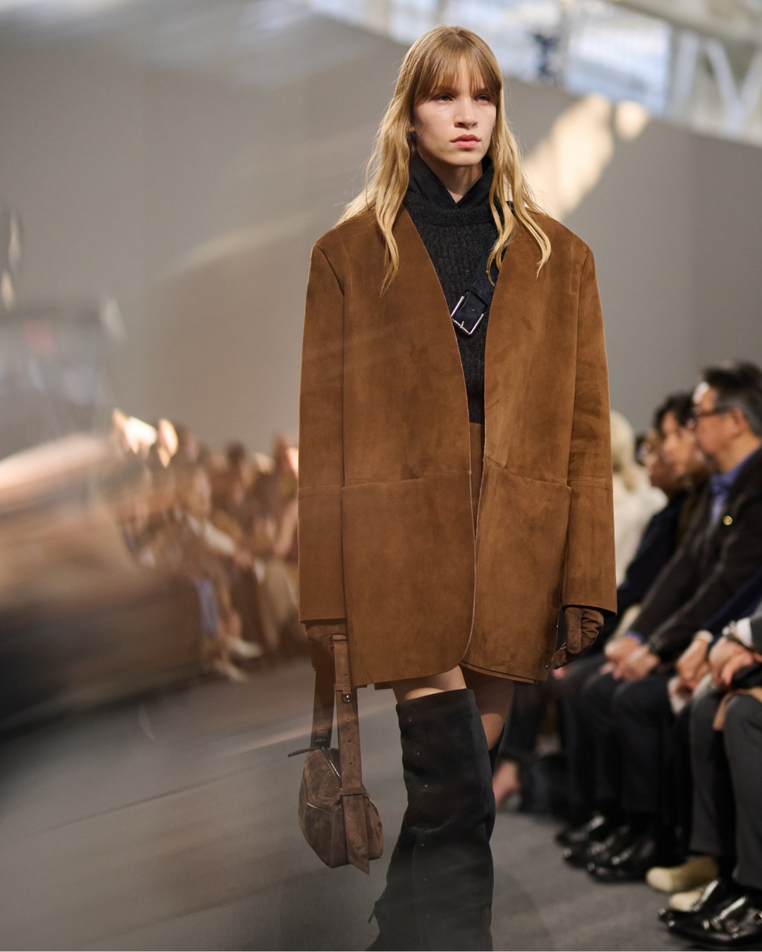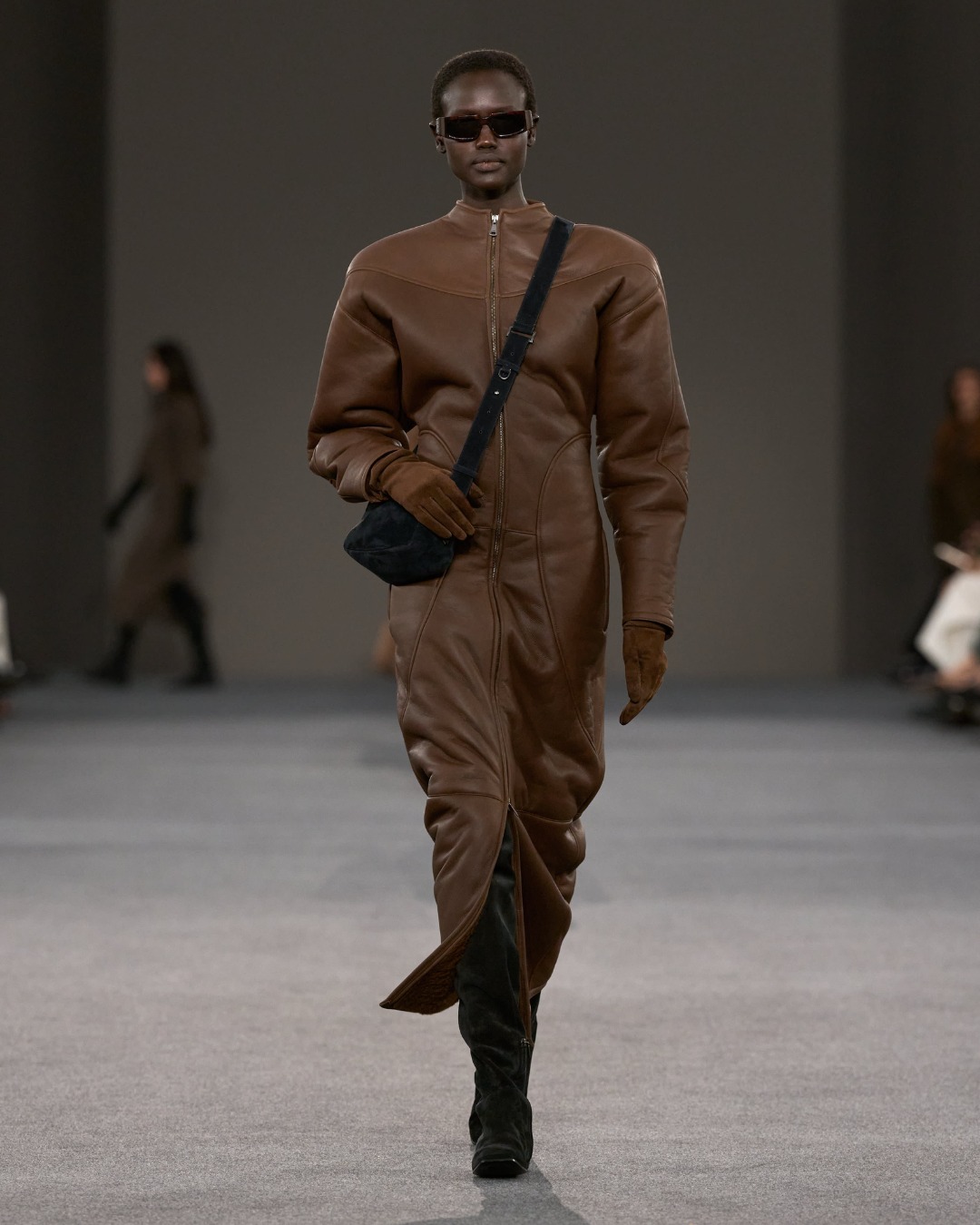 أما من حيث القصات، فقد استعاد "المعطف" مكانته كقطعة مركزية لا تقبل المنافسة، حيث قدمته الدار بأحجام ضخمة ومدروسة تمنح الجسد حرية الحركة دون أن تفقد التصميم توازنه الهندسي. ولم يقتصر الإبداع على المعاطف فحسب، بل امتد ليشمل التلاعب المتقن في تضاد الأقمشة؛ فشاهدنا مزجاً ساحراً بين صوف الكشمير الثقيل والحرير الرقيق في التنانير المنسدلة، مما أضفى حيوية وحركة على منصة العرض.
