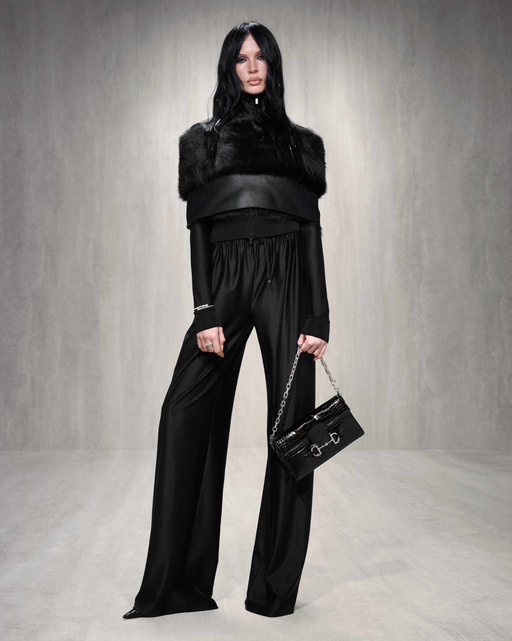 حضر طيف التسعينيات، وتحديداً حقبة توم فورد الذهبية، ولكن بنسخة معدلة وجريئة. فساتين سهرة بفتحات تكشف الظهر بجرأة، مقابل أطقم "بيجاما" مرصعة بالترتر يرتديها الرجال حفاة الأقدام، لتذوب الحدود بين غرف النوم وقاعات الاحتفالات.