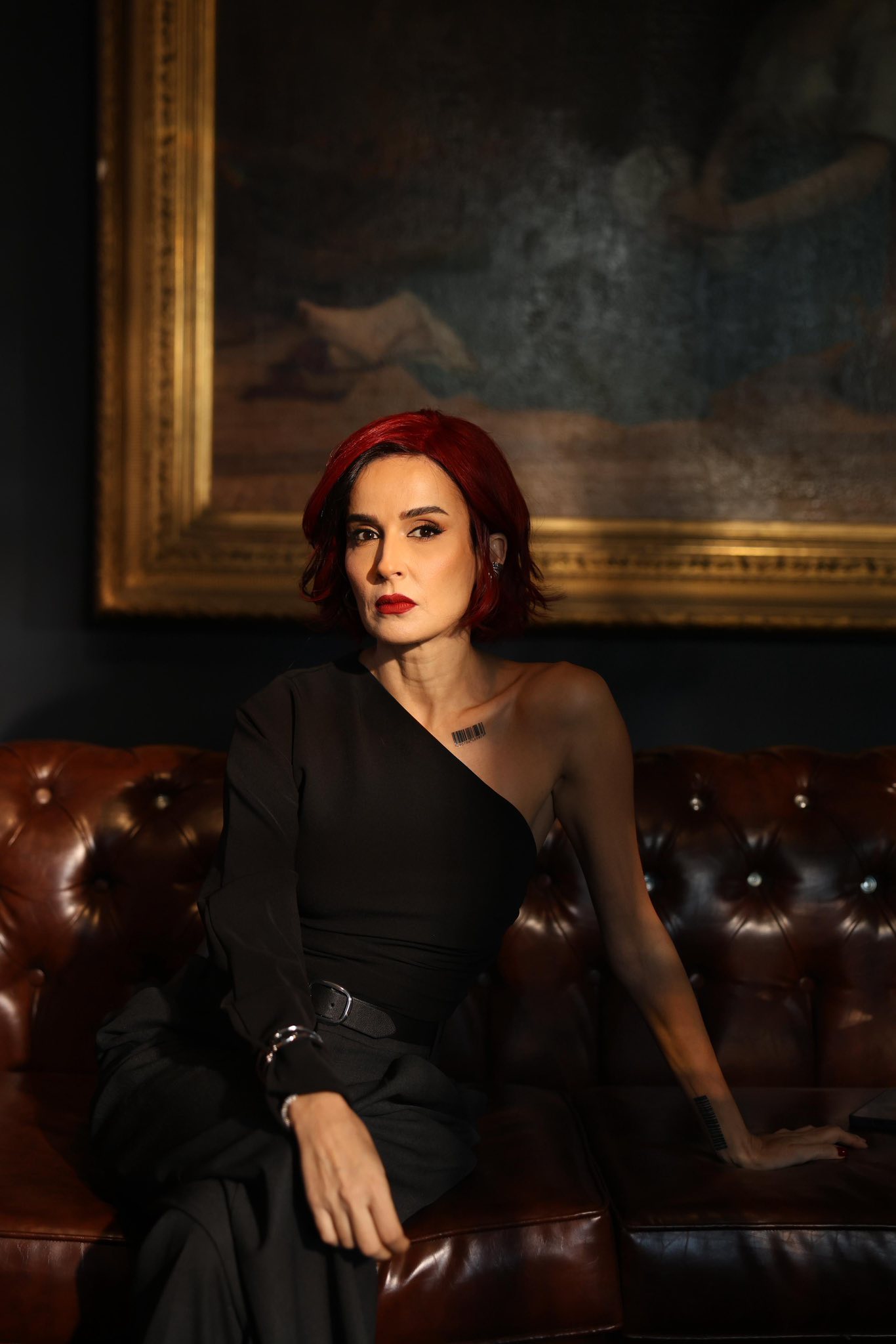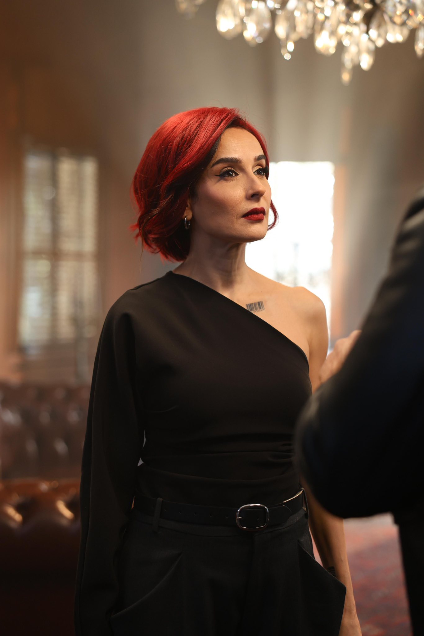 حين نتأملُ في تقاسيمِ وجهِها الجديد، لا نرى مجردَ ممثلةٍ غيّرت لونَ شعرِها، بل نرى "انزياحاً" كاملاً في كينونةِ الشخصية. لقد انصهرَ الأحمرُ الناريُّ في شعرِها مع حدّةِ الملامحِ ليخلقَ هالةً من "الخطرِ الأنيق"، ذلك الذي لا يستأذنُ أحداً قبلَ أن يقتحمَ الروح. في هذا الوجه، صارَ المكياجُ القويُّ وأحمرُ الشفاهِ الصارخُ لا يرمزانِ للجمالِ التقليديِّ، بل هما قناعٌ حربيٌّ؛ صبغةٌ اصطناعيةٌ تداري خلفها برودةَ العقلِ الذي يتاجرُ بالبراءة.
