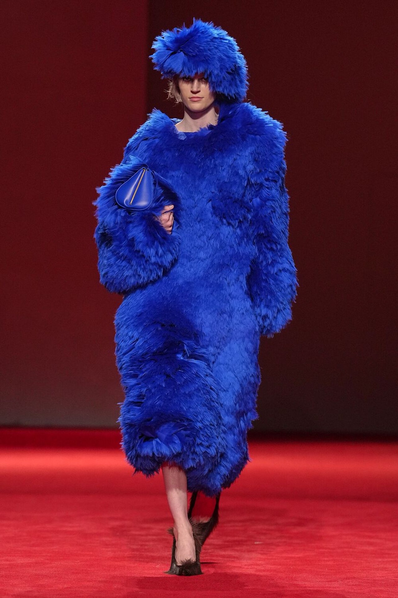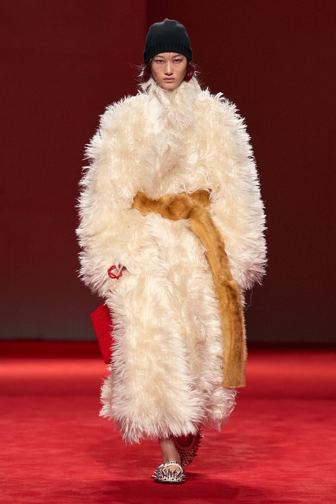 مع تقدّم العرض، تحوّل التركيز من القصّة إلى الخامة. المعاطف لم تكن مجرّد معاطف؛ كانت مساحات تجربة. جلد بدا كأنه فرو، فرو عولج ليأخذ شكلاً جديداً، خامات ثقيلة في شكلها، خفيفة في حركتها.