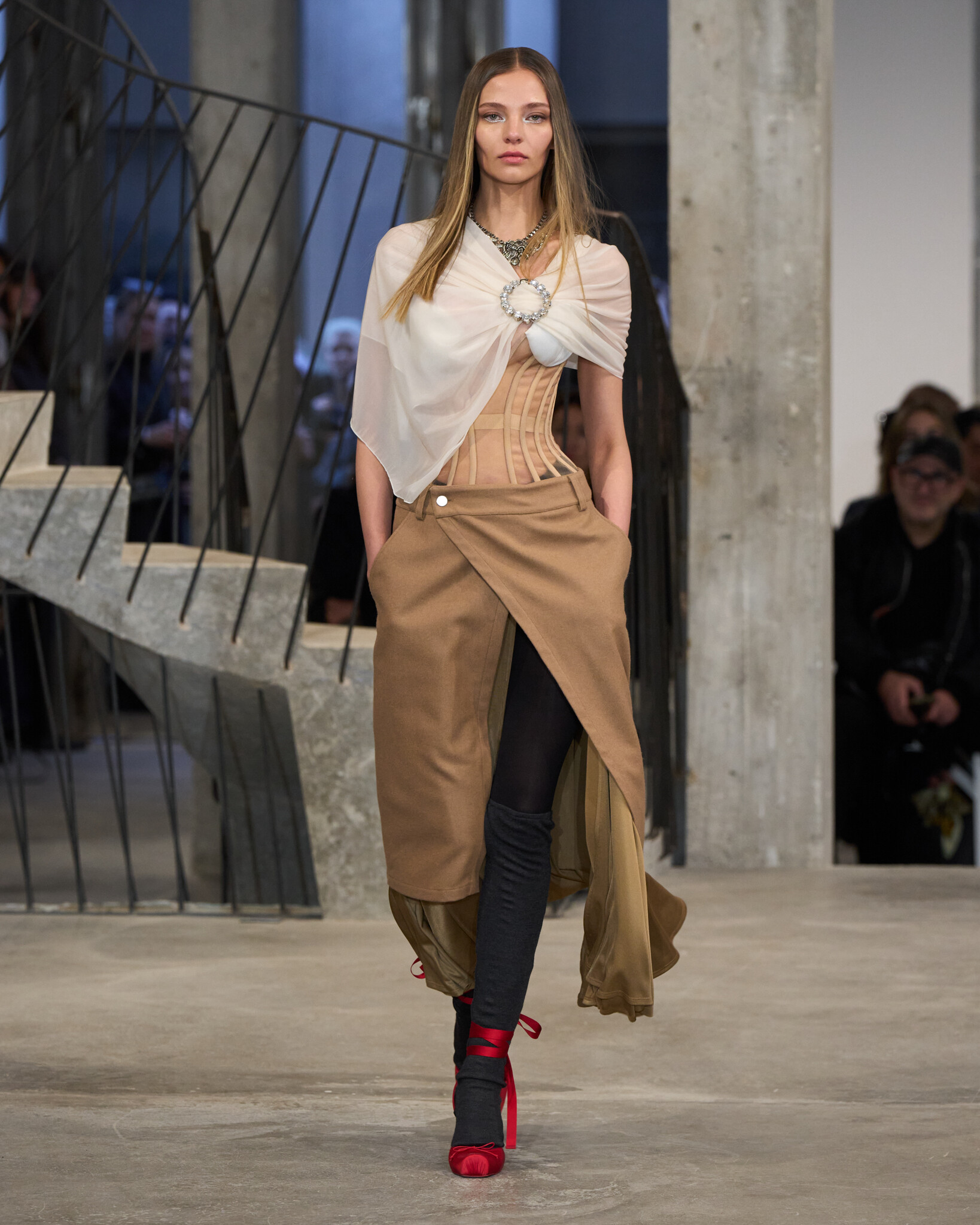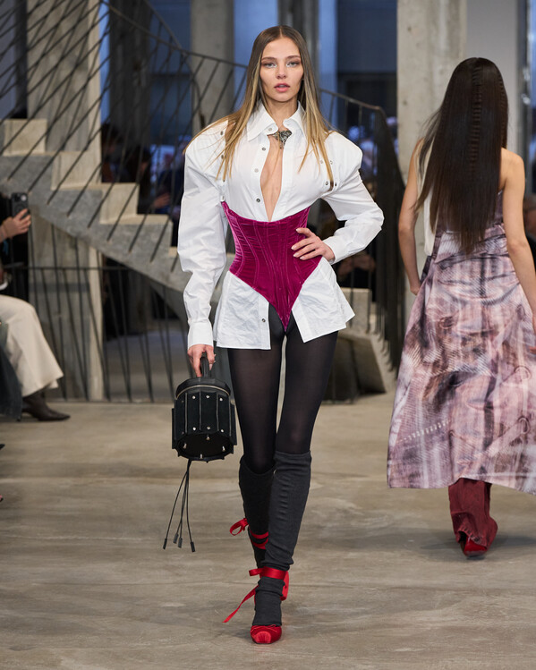 افتتحت دار Weinsanto أسبوع باريس بعرضٍ لم يكن للأزياء بقدر ما كان للعواطف المنسوجة. في هذا العرض، تخلّى "فيكتور وينسانتو" عن القبعات التقليدية ليجعل الجسد نفسه هو المسرح. رأينا فساتين "التول" التي تبتلع الفضاء من حولها، وتصاميم تعيد تعريف "الكورسيه" بجرأة هندسية لافتة. لقد كانت المجموعة مزيجاً بين الفوضى المنظمة والأناقة المتمردة، حيث التقت أقمشة الـ Denim المصبوغة بالفرو الأبيض المبالغ فيه، لترسم لوحة سريالية تعلن أن باريس لا تعترف بالقيود.
