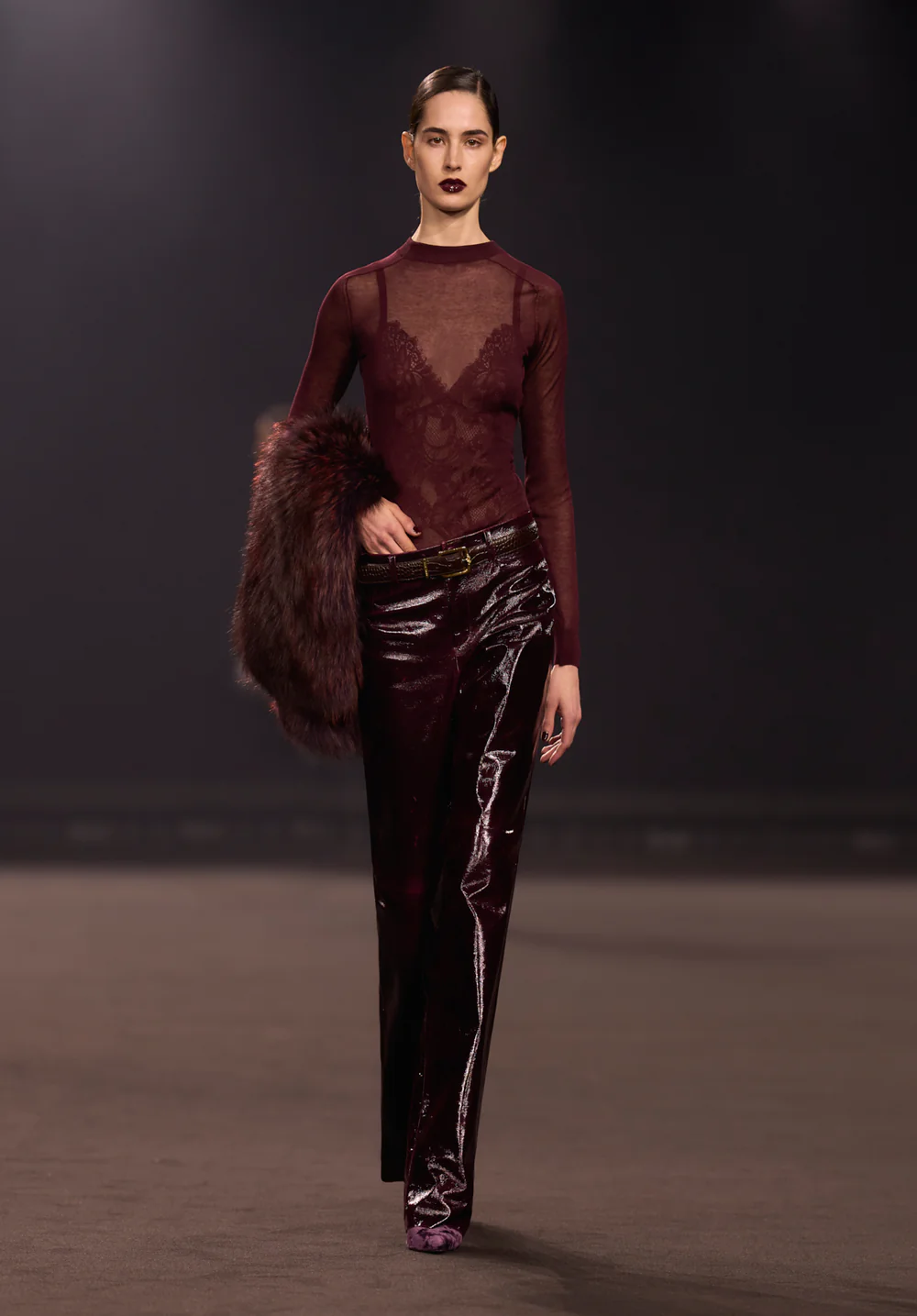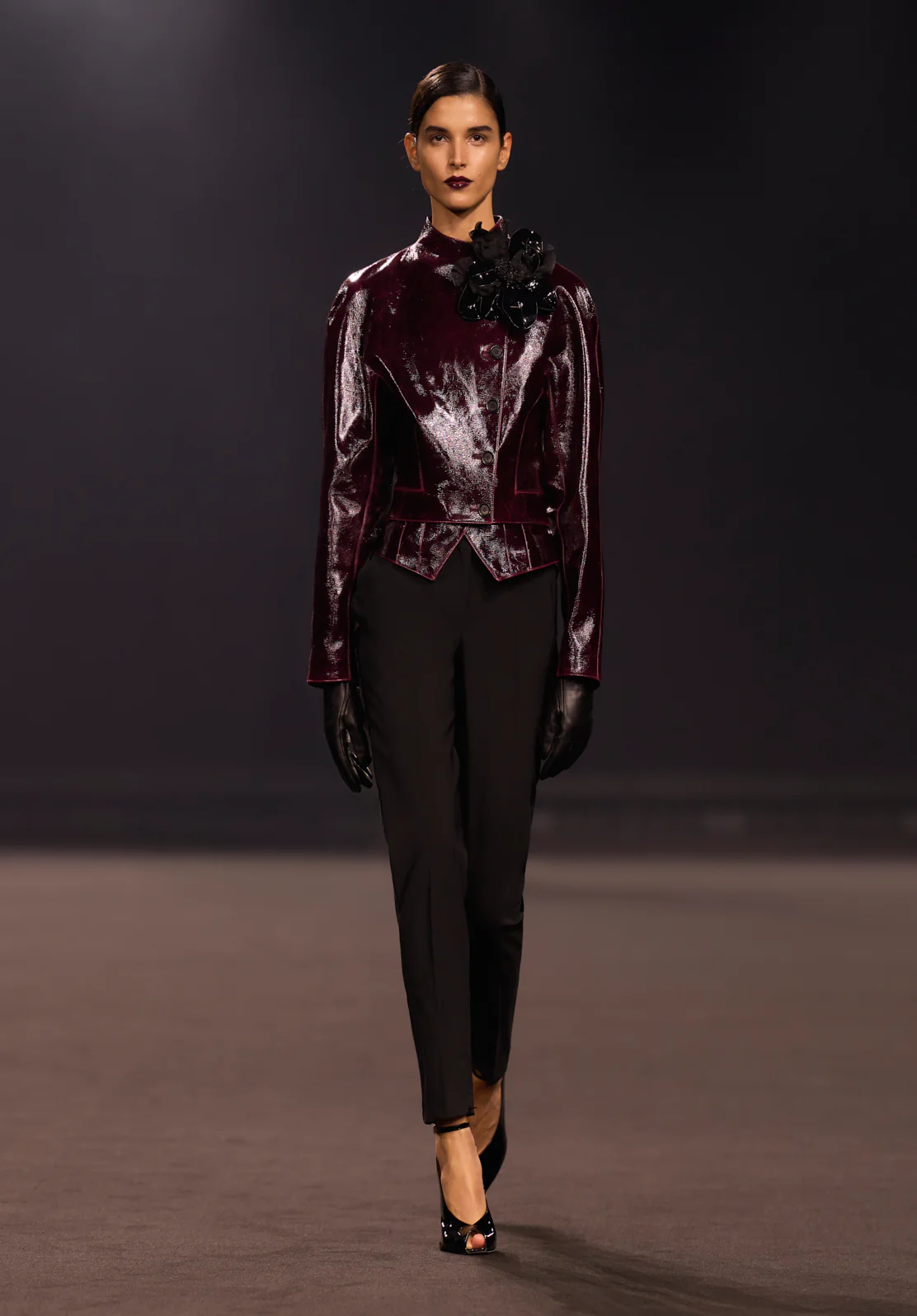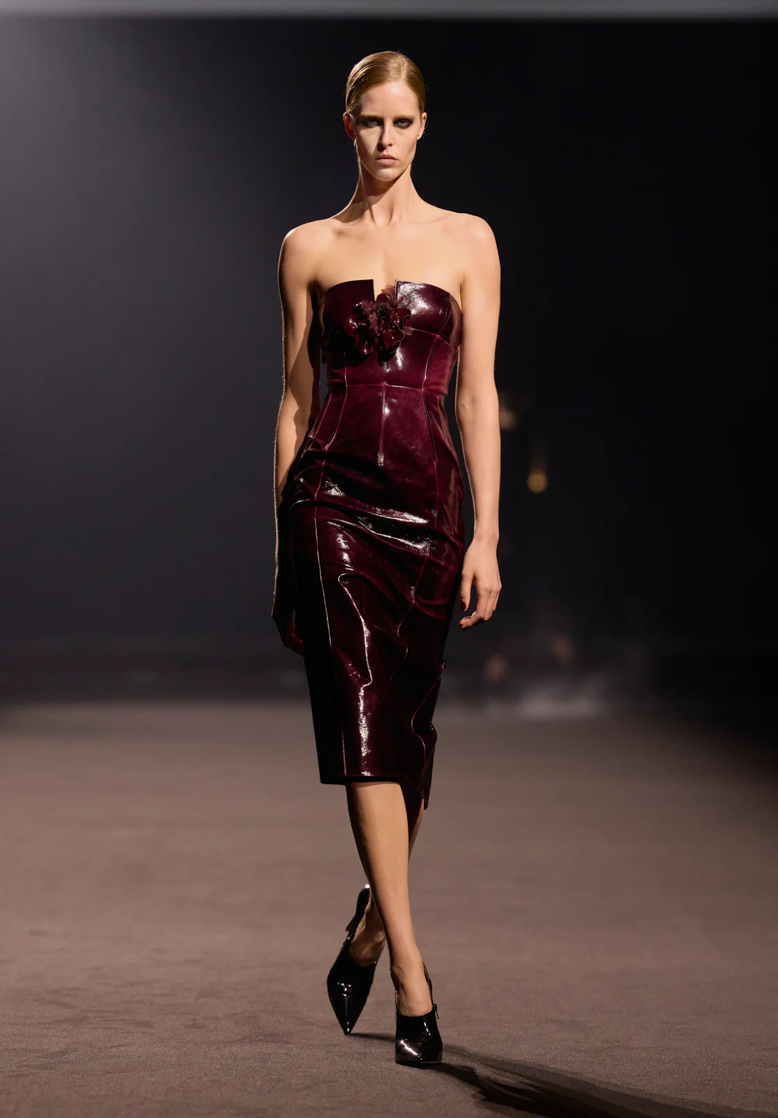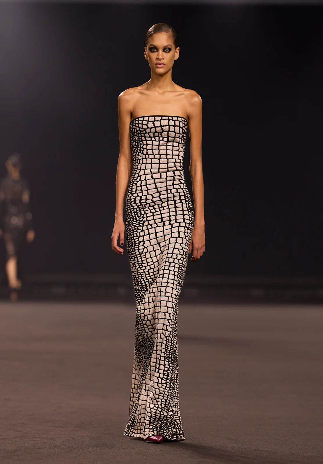برزت فساتين "التفتا" بتنانيرها القصيرة المنفوخة وصدورها الضيقة كخيار مثالي للانتقال من افتتاح معرض فني إلى حفلة مسائية صاخبة. وختم المصمم عرضه بفساتين السهرة الضخمة (Ballgowns) بألوان عاصفة داكنة، لتقدم ذروة سينمائية تليق بمنصات العرض العالمية.