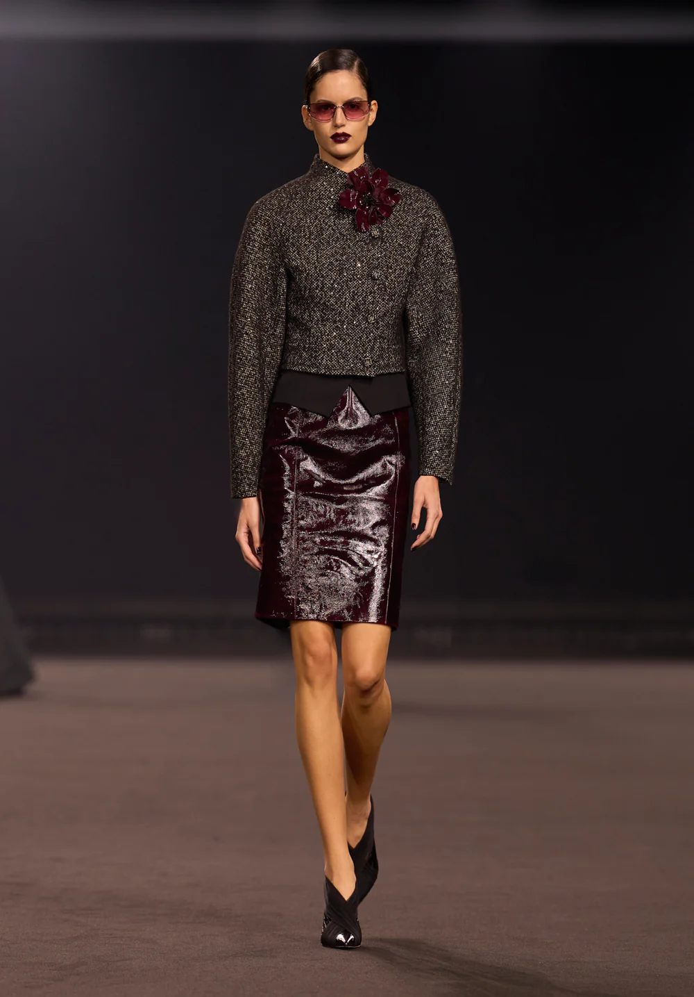 استخدم المصمم خامات فاخرة مثل الصوف والتفتا والقطيفة (Velvet) بألوان الليل الأسود والرمادي الفحمي، مما يجعل هذه القطع مثالية لساعات العمل الطويلة عند تنسيقها مع القمصان الحادة والكنزات البسيطة. أما للمناسبات التي تتطلب حضوراً طاغياً، فقد برزت طبعة جلد التمساح (Crocodile print) كبصمة فريدة تمنح المرأة قوة إضافية.