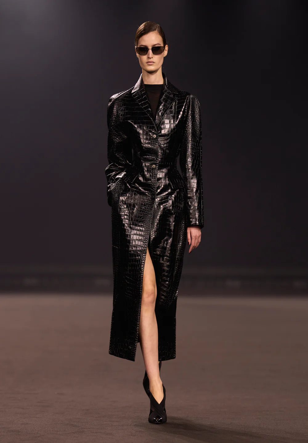 لم تخلُ المجموعة من عنصر الإبهار؛ حيث عادت طبعة جلد التمساح لتظهر من جديد بلمسة من الغلامور على تول مطرز بالترتر، مع تداخلات الدانتيل التي تزيد من جاذبية التصاميم.