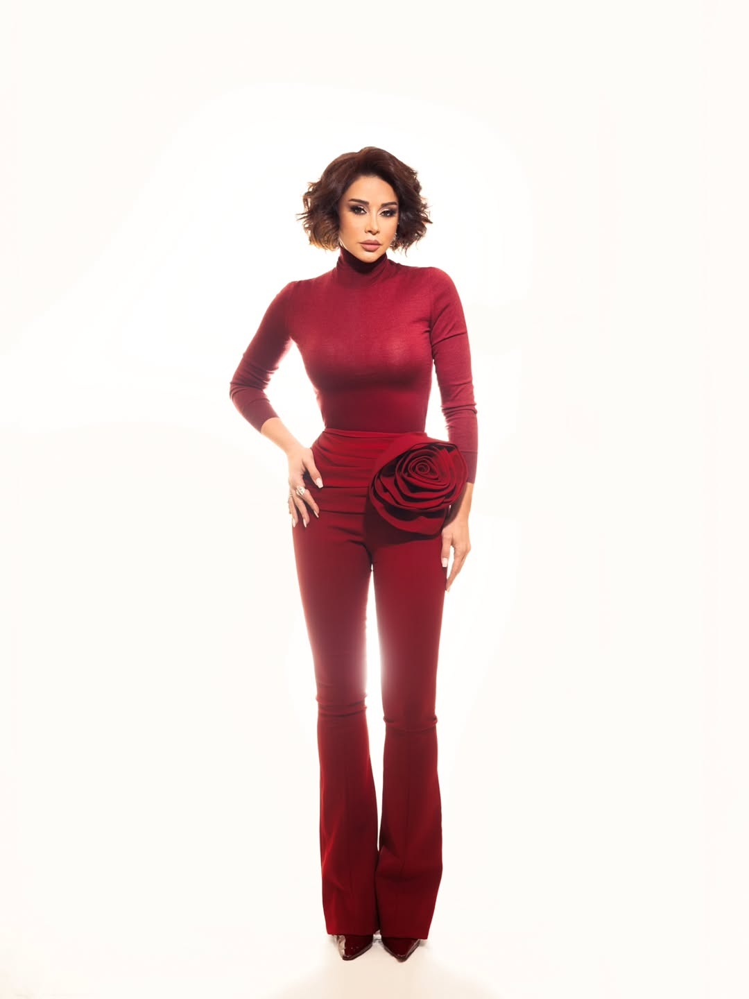 حيث خلعت كريس هناك ثوب الحداثة لترتدي روح الثمانينات بصخبها وتفاصيلها الشعبية. الفرق بين الحلّتين يعكس مرونة فنانة تستطيع أن تكون المغنية الشعبية ذات الشعر الطويل والإطلالات المزدحمة في الكادر الدرامي، ثم تتحول بلمحة بصر إلى ملهمة دور الأزياء العالمية بملامح حادة ونظرة تمسك بزمام الأناقة العالمية بعيداً عن ضجيج البلاتوه.