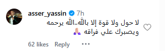 آسر ياسين: "لا حول ولا قوة إلا بالله.. الله يرحمه ويصبرك على فراقه".