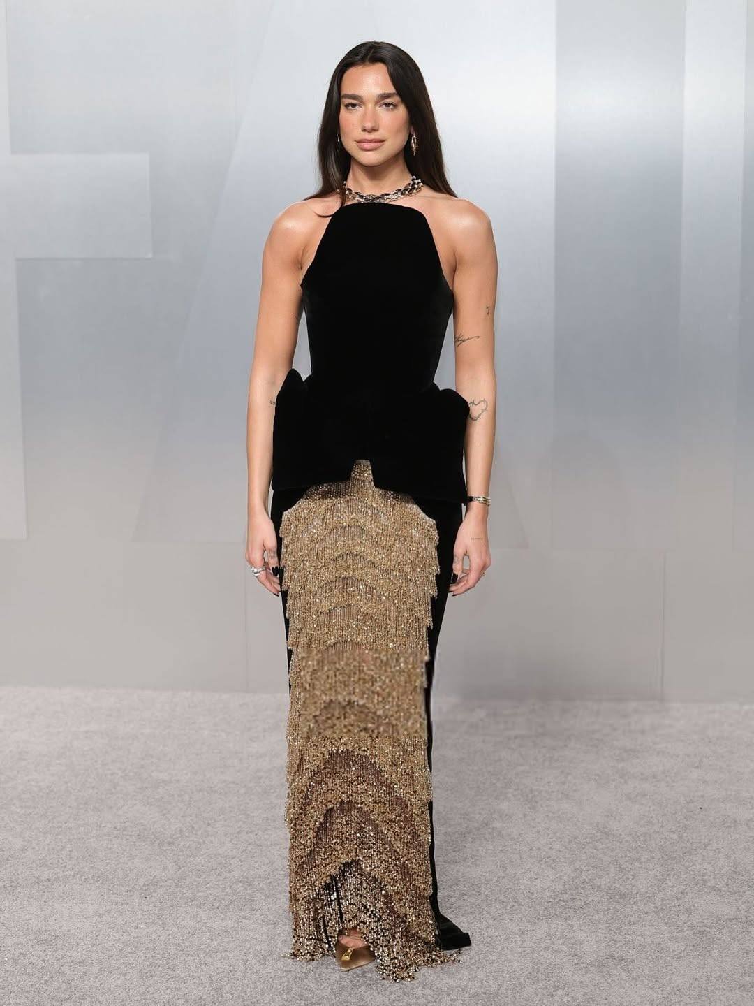 بأسلوبها الجريء المعتاد، اختارت دوا ليبا دار سكياباريللي (Schiaparelli) لتطل بثوب يدمج بين الأسود الملكي والزخارف الذهبية المنحوتة التي تشتهر بها الدار. إطلالة "أيقونية" تدمج بين الموضة والفن السريالي، وجعلت من دوا ليبا واحدة من أكثر النجمات لفتاً للأنظار.