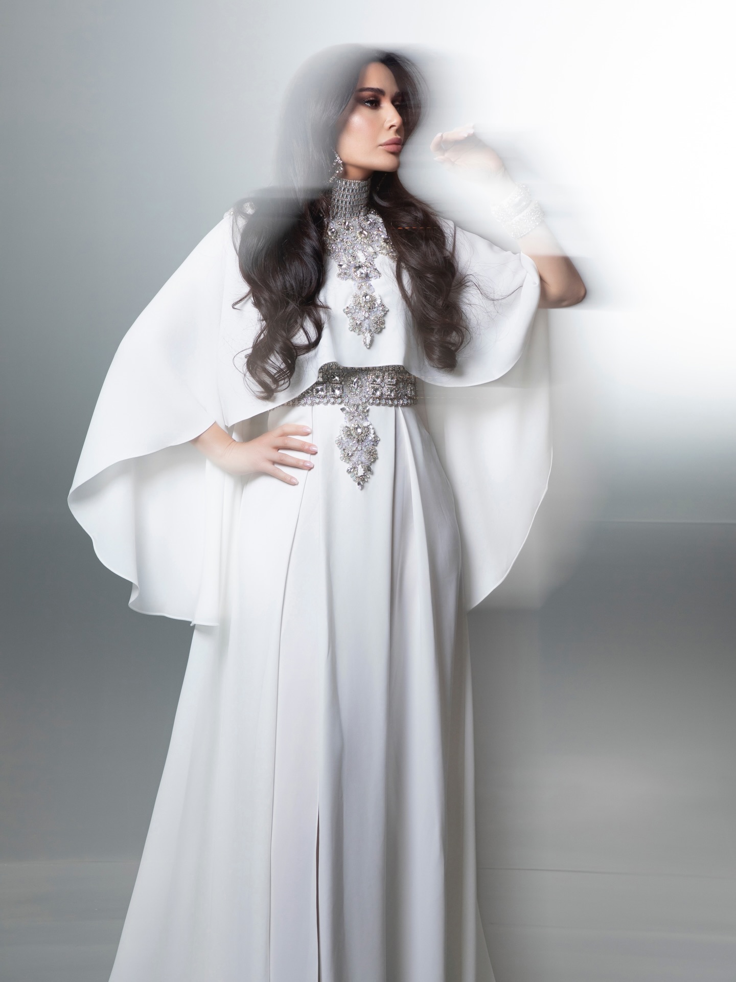 وتعكس هذه العباءة روح مجموعة "سِحر" التي تحتفي بالمرأة بأسلوب راقٍ وهادئ، حيث تلتقي البساطة مع الفخامة في تصاميم تحمل لمسة عصرية مستوحاة من التراث. إطلالة تجسد الأنوثة الراقية وتُعد خياراً مثالياً لإطلالات العيد، تجمع بين الرقي والبساطة في آنٍ واحد، وتؤكد مجدداً بصمة خالد ومروان في تقديم أزياء تعبّر عن الفخامة المعاصرة بأسلوب متفرّد.