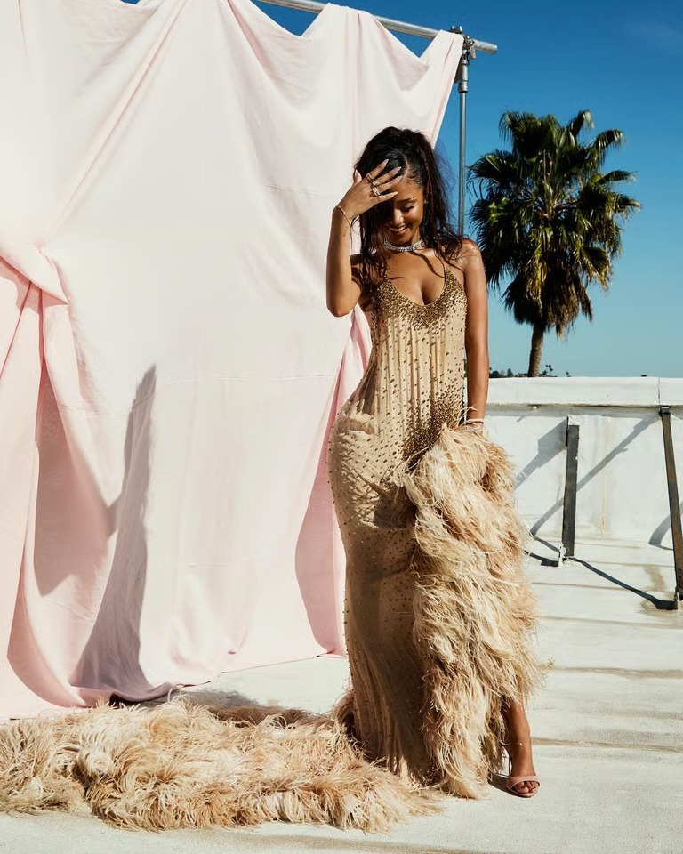 في Golden Globes 2026، اختارت Odessa A’Zion قطعة مزينة بالريش من Dolce & Gabbana Vintage، مزيج فخم بين تاريخ الكوتور والحضور العصري، مؤكدًا أن الأرشيف يمكن أن يكون بيانًا جريئًا وفاخرًا في الوقت نفسه.