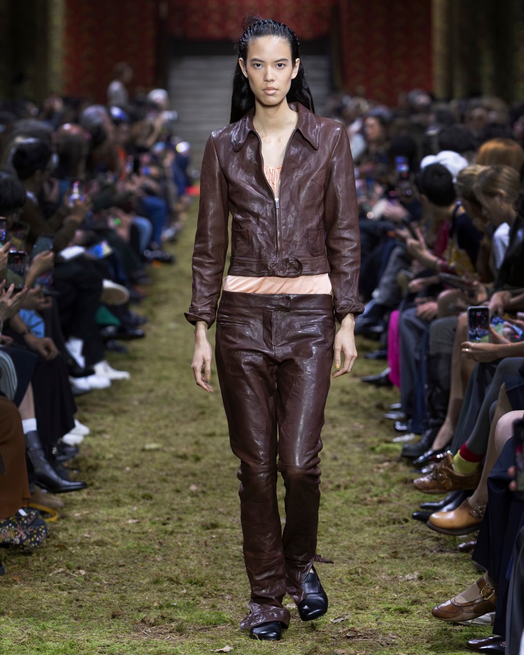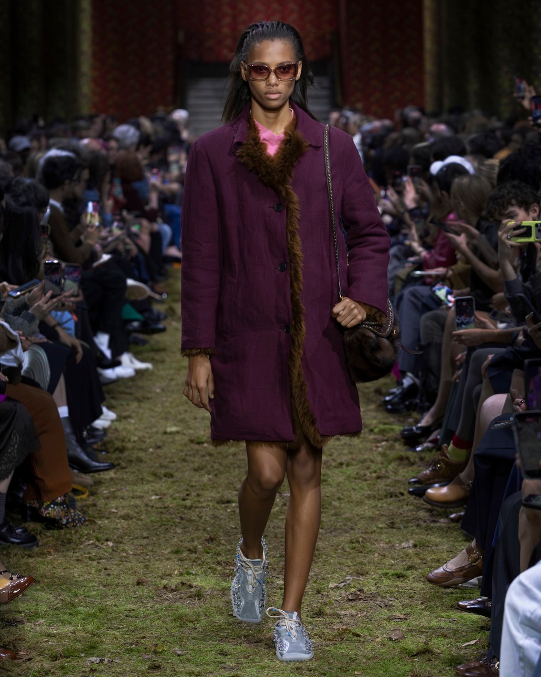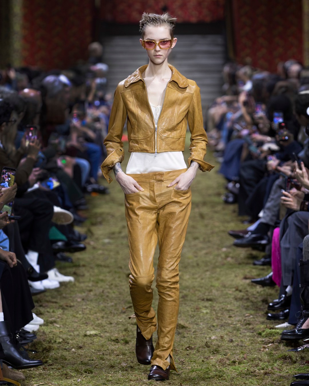 إضافة الترتر على بعض القطع والأقواس الصغيرة أضفت لمسة شبابية ومبهجة، بينما أعاد شريط الرأس المتعرج Zigzag ابتكار إكسسوار الألفينات بطريقة عصرية، مؤكدًا شخصية الفتاة الفوضوية. مع نهاية العرض، ظهرت الزخارف النباتية على أطراف الجاكيتات، وكأن الطبيعة نفسها اندمجت داخل الملابس، لتصبح القطع أكثر حيوية وتعبيرًا عن الحياة.