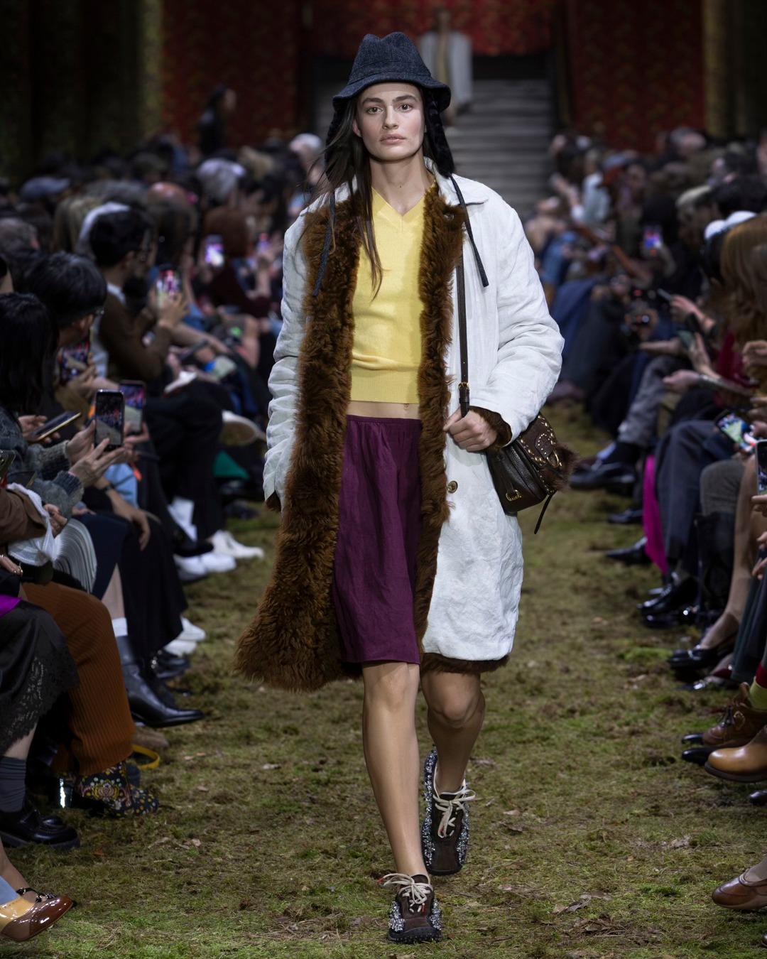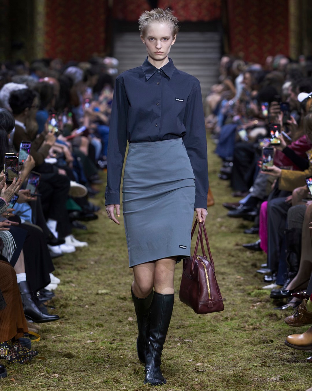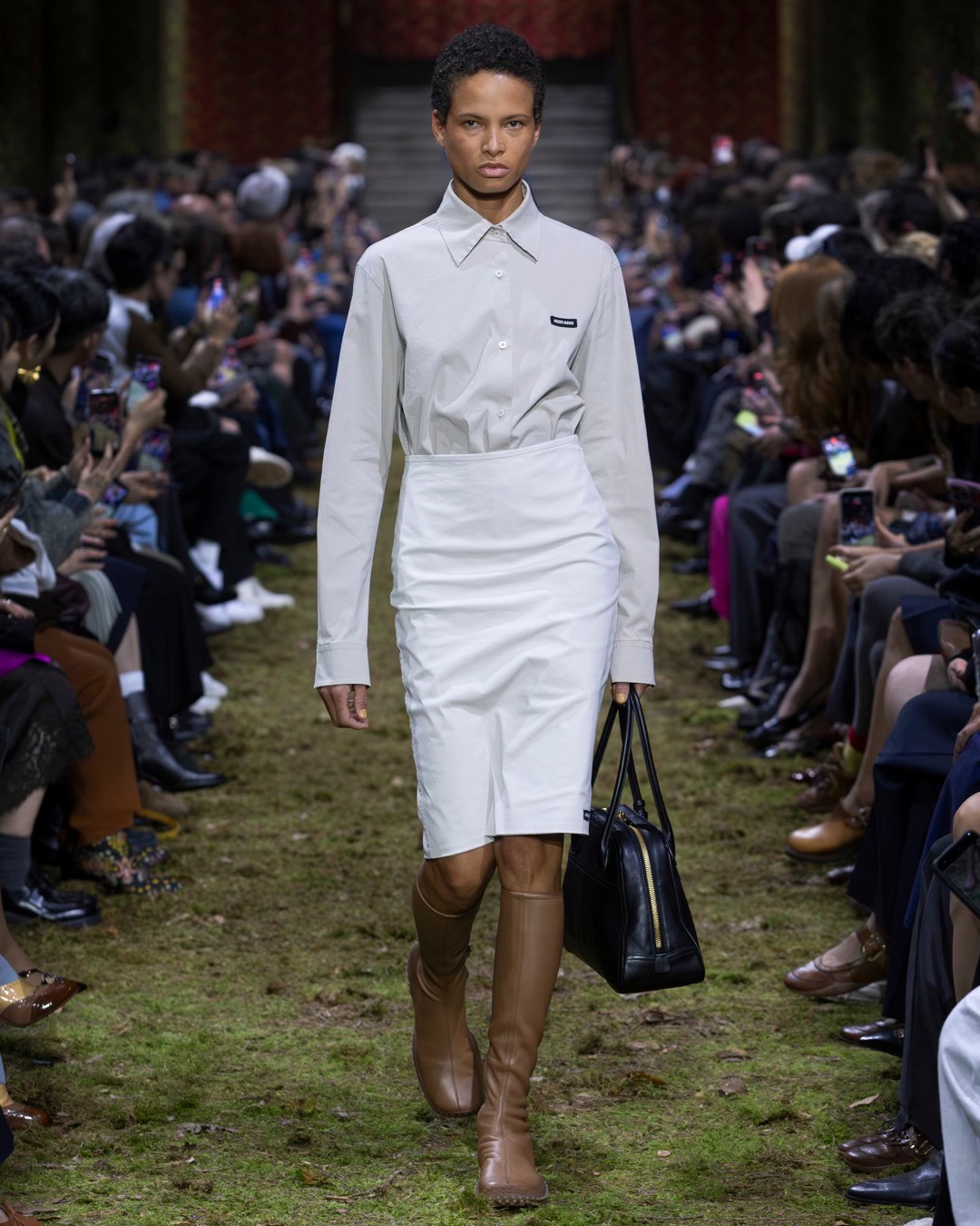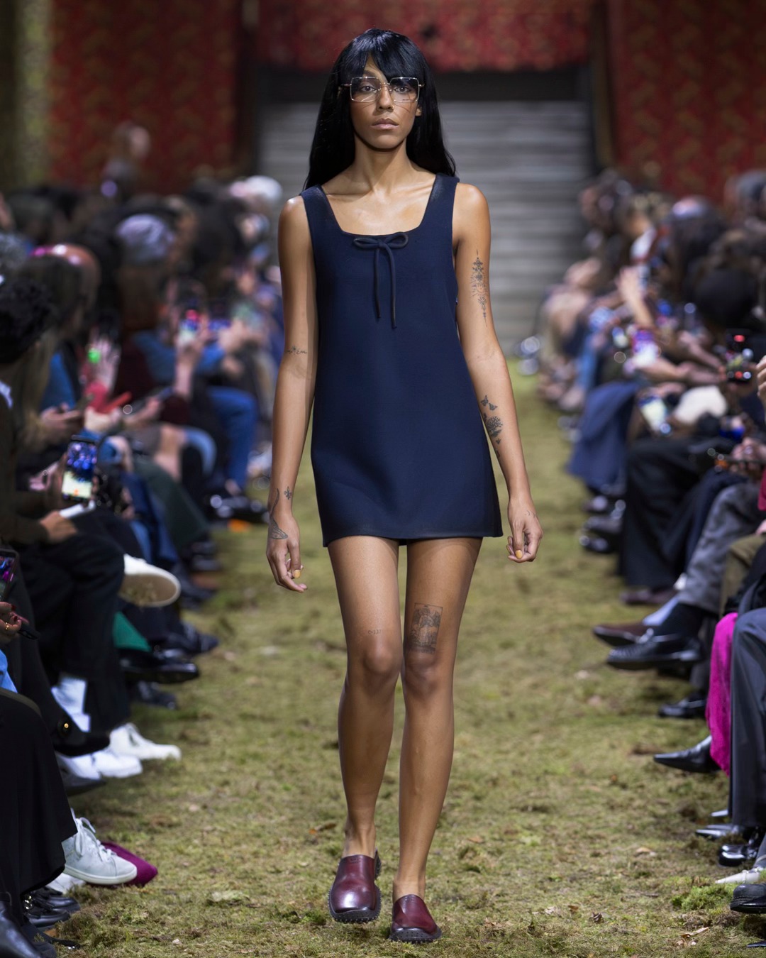 تبدو الموضة هنا مستقاة من الراحة ومن الضلال حيث الاناقة مرحة وخفيفة . قدمت دار Miu Miu مجموعة خريف/شتاء 2026–2027، مستكشفة الأنوثة المعاصرة من خلال اللامثالية والفوضى المتعمدة. تحت قيادة ميوتشيا برادا Miuccia Prada، حمل العرض توقيع أسلوب “الفتاة الفوضوية”، حيث تصبح اللامثالية جزءًا من الأناقة الحديثة وتعكس شخصية المرأة المعاصرة التي تجمع بين العفوية والرقة.