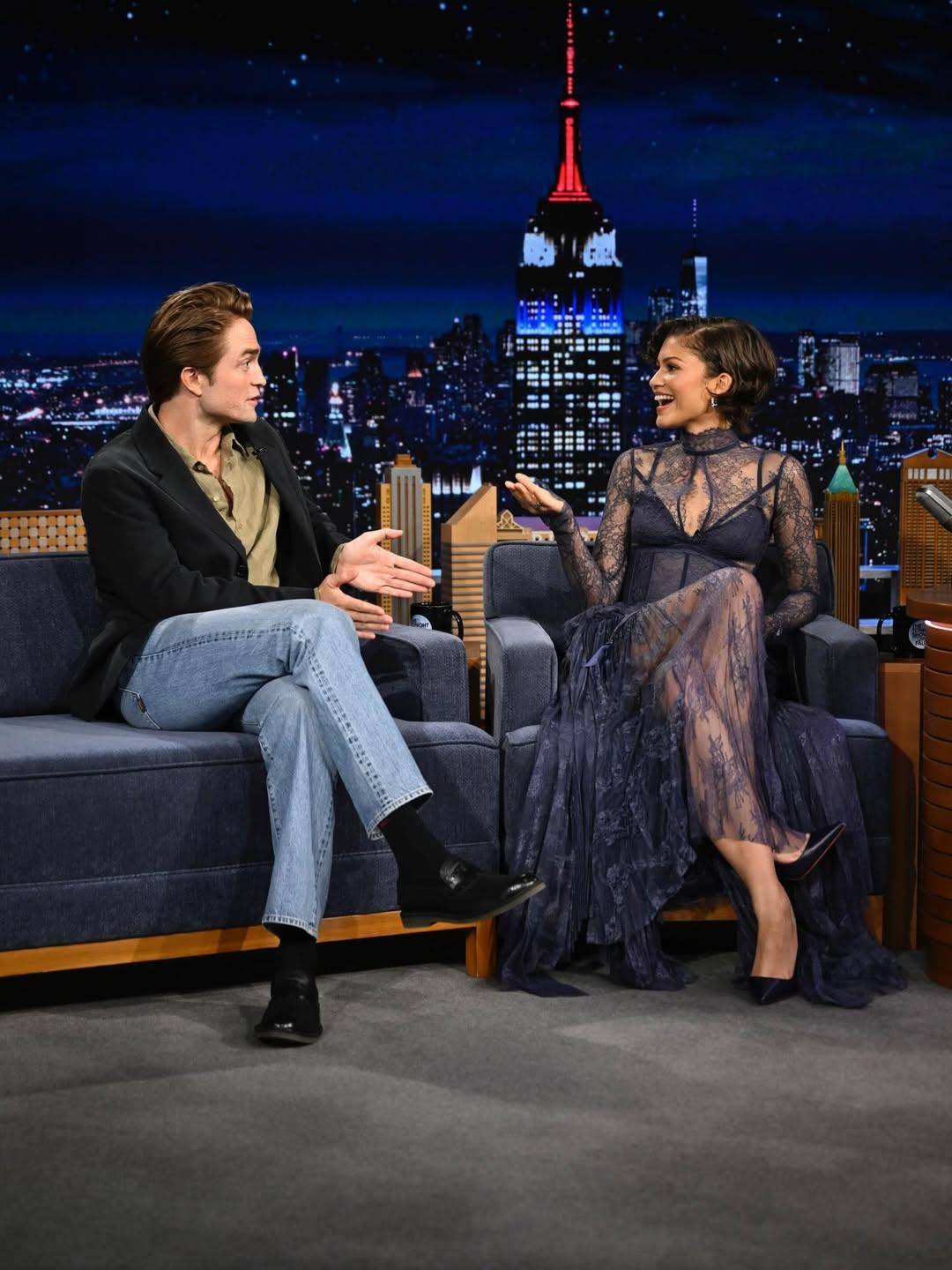 أما خلال ظهورها في برنامج جيمي فالون Jimmy Fallon، فقد اختارت زيندايا مقاربة مختلفة تماماً، أكثر نعومة وتفصيلاً، من خلال فستان دانتيل كحلي من توقيع Zimmermann.