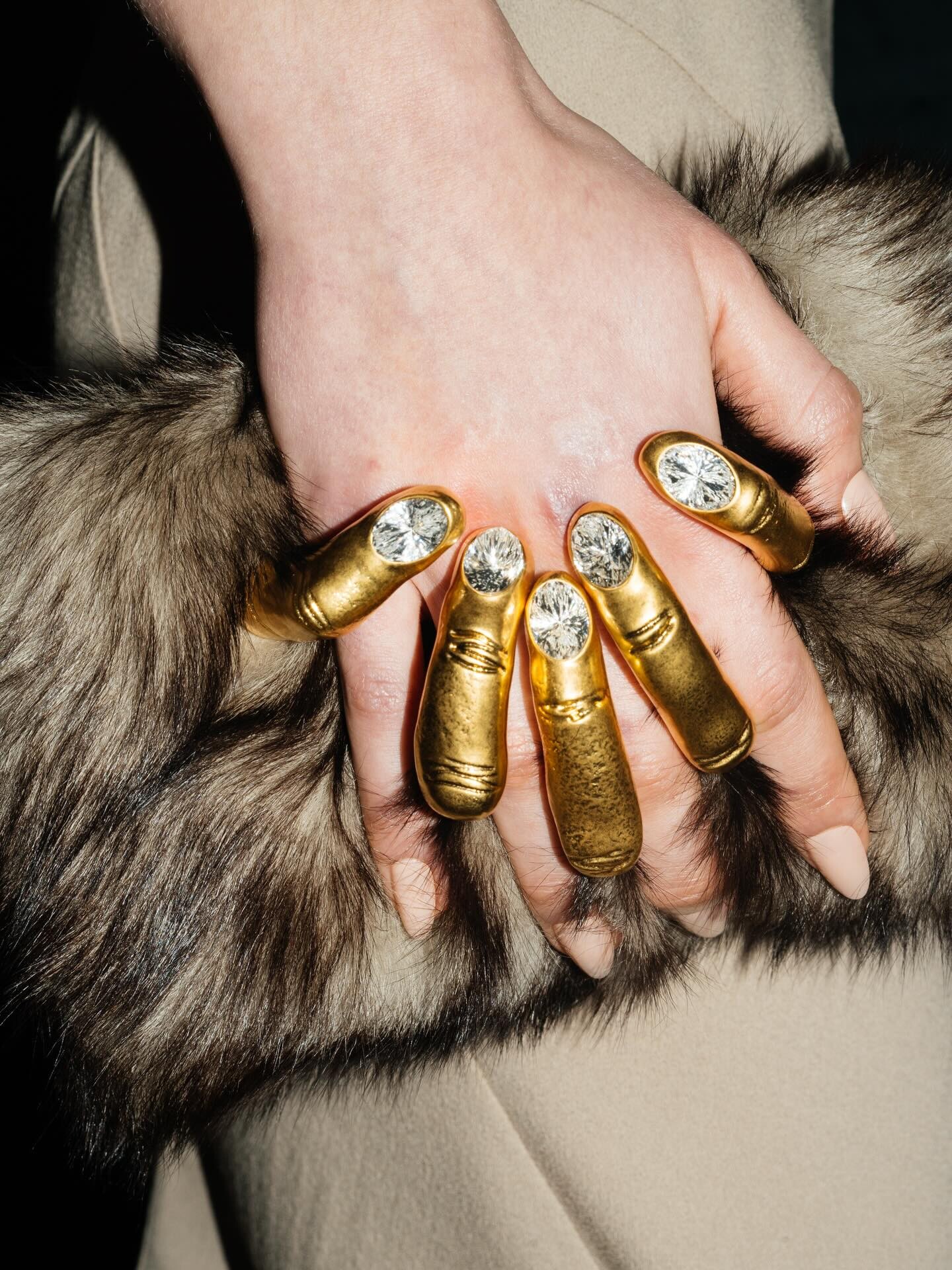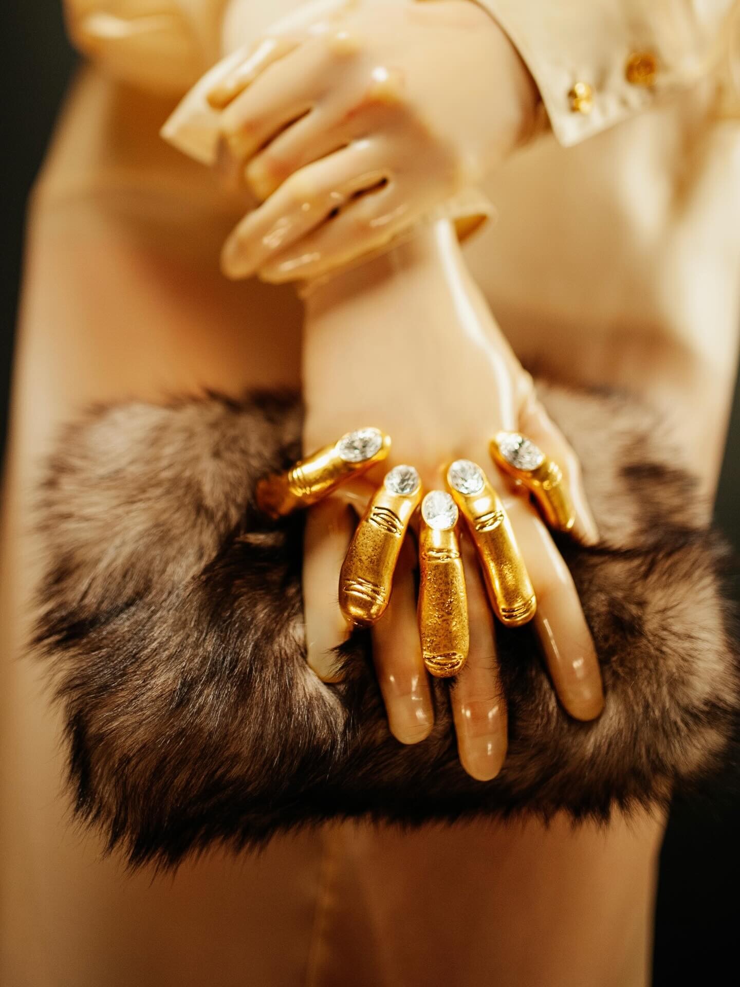 ومن هنا، تأتي حقيبة Hand in Hand من سكاباريللي، لتجسد هذا المفهوم بأبهى صوره. اليد الذهبية التي تعانق الحقيبة ليست مجرد تصميم؛ إنها امتداد للجسد، تلامس المرأة بكل تفصيل حيث التشابك عالي جدا والهندسة مبتكرة من الفرو الغني، المعدن المذهب، والأظافر الكريستالية تصنع حالة من التواصل البصري والحسي، فتشعر المرأة وكأن الحقيبة ملتصقة بها ، تتحرك معها، وتصبح جزءاً من جلدها الثاني.