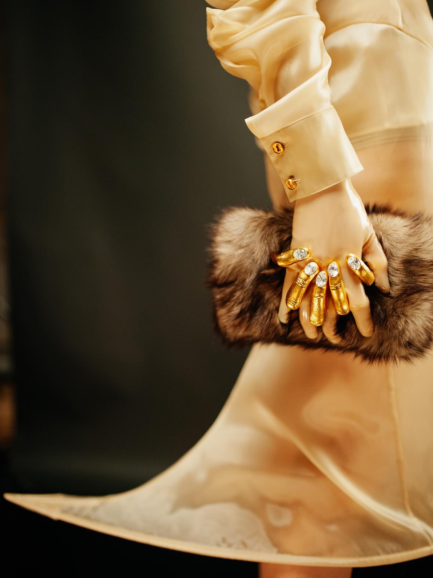 دانيال روزبيري يتجاوز الوظيفة التقليدية للحقيبة كأداة للحمل، ليحوّلها إلى امتداد جسدي حي. اليد الذهبية التي تحتضن الحقيبة تعكس روح السريالية، مستلهمة من تعاون إلسا سكاباريللي مع سلفادور دالي في ثلاثينيات القرن الماضي، حيث تحوّلت الأعضاء البشرية إلى قطع فنية. الحقيبة هنا تمسك بصاحبتها بقدر ما تمسك هي بها، لتصبح تجربة حقيقية بين المرأة والإكسسوار، تجمع بين الفن والجمال والغرابة في آن واحد.