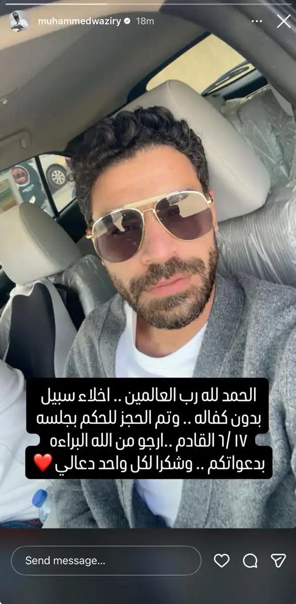 في أول رد فعل له منذ فترة، أعرب محمد وزيري عن تفاؤله عبر حسابه على تطبيق إنستغرام، حيث كتب: