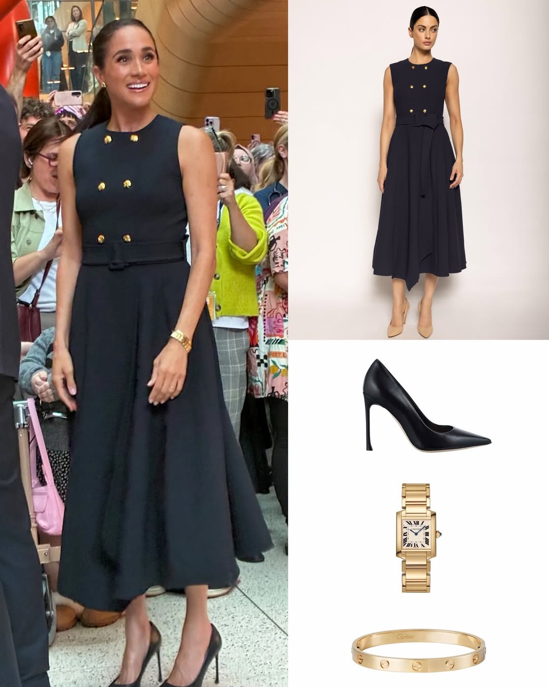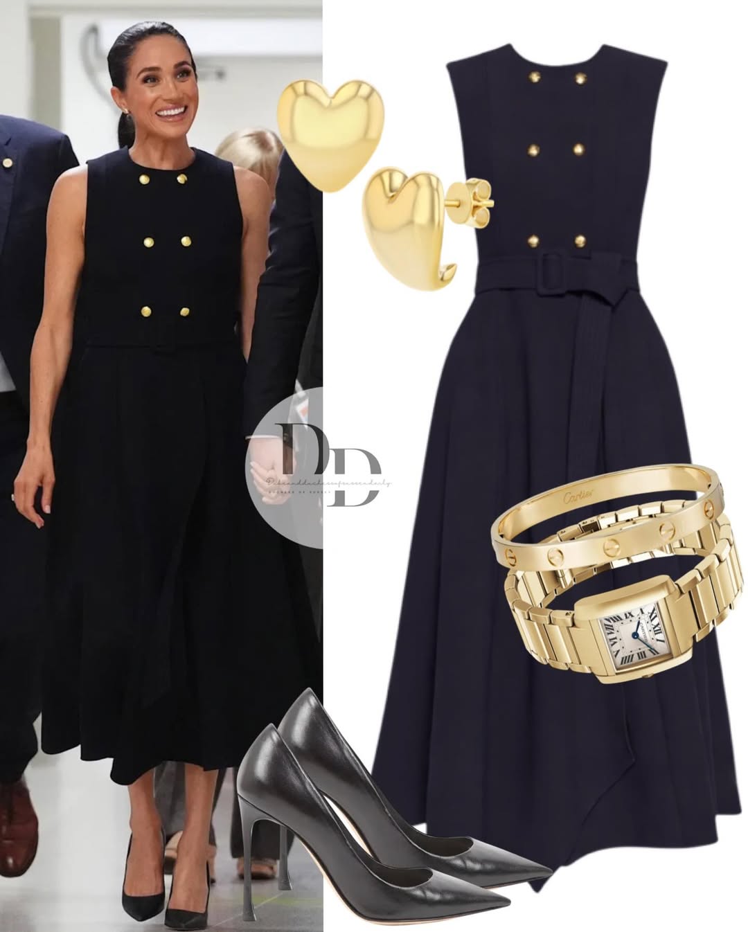 فقد تألقت ميغان بساعة “Tank Française” من كارتييه، وهي قطعة أيقونية ارتبطت باسم الأميرة ديانا، ما منح الإطلالة بعداً إنسانياً مؤثراً، وكأنها رسالة صامتة تؤكد استمرارية الإرث الملكي عبر الأجيال.