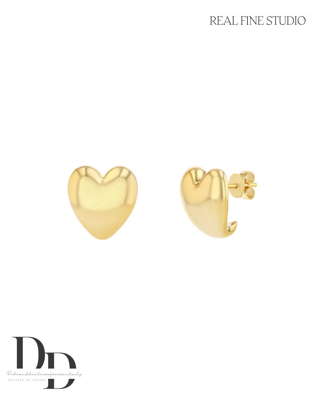 ولم تكتفِ بذلك، بل أضافت أقراطاً ذهبية على شكل قلوب من علامة Real Fine Studio، في لمسة ناعمة كسرت صرامة الإطلالة الرسمية، ومنحتها دفئاً أنثوياً يعكس جانبها الشخصي.