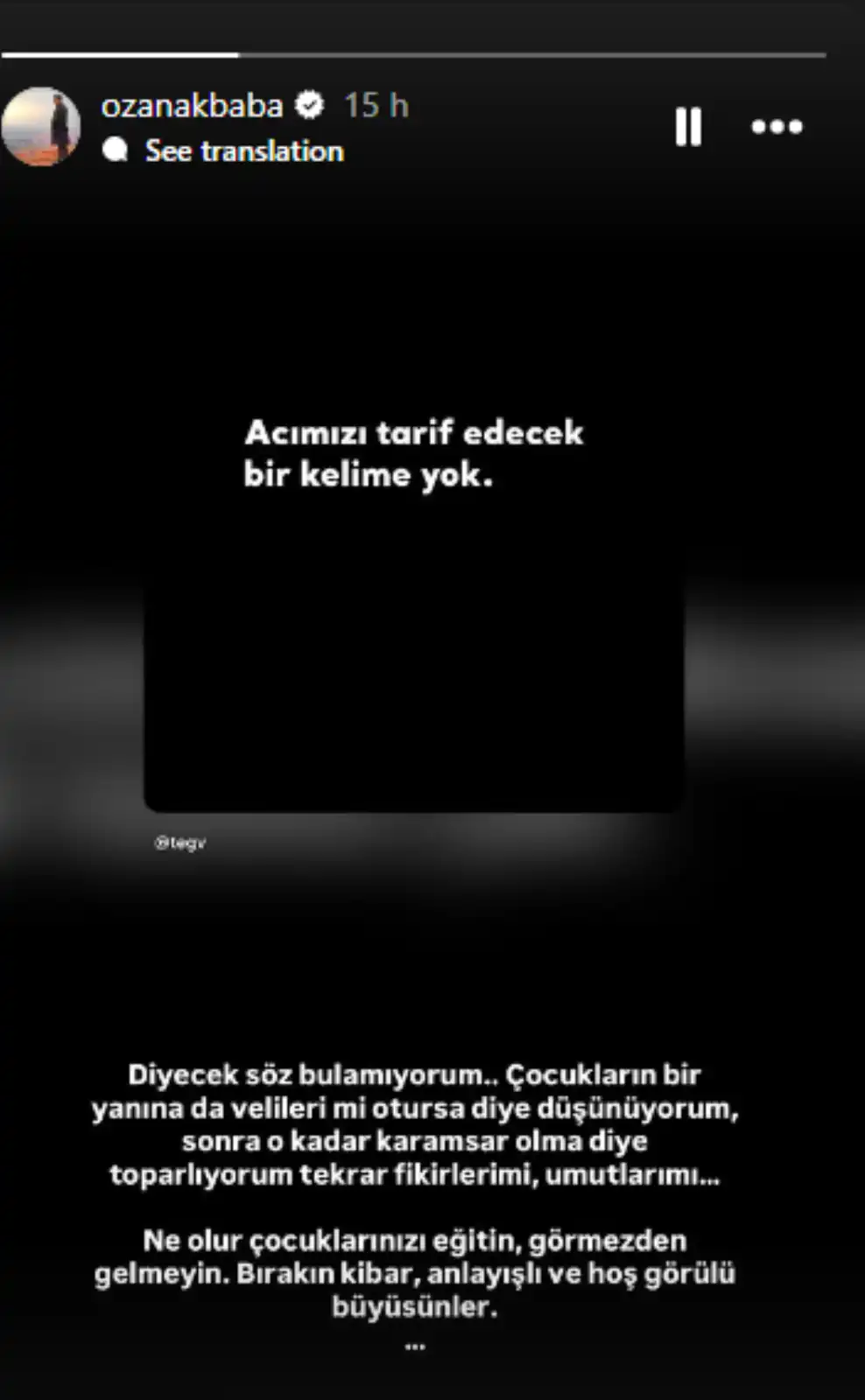ديميت أوزدمير: عبرت نجمة "حلم أشرف" عن شعورها بالاختناق من هول الخبر، مؤكدة أن المدارس يجب أن تكون المكان الأكثر أماناً للأطفال بعد منازلهم.