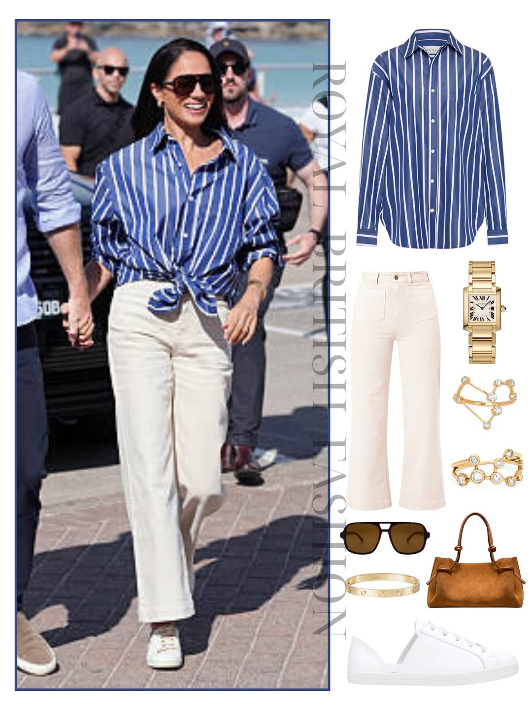 لم تكن إطلالتها مجرد اختيار عابر، بل بدا وكأنها "نهج" تتبعه في جولتها الأسترالية؛ نهج يعتمد على القطع العملية التي تحاكي ذوق المرأة العصرية والبسيطة. ارتدت قميصاً مخططاً كلاسيكياً من علامة Matteau وبنطال جينز أبيض بخصر مرتفع من Rolla’s، وهي قطع تتميز بلمسة "كاجوال" راقية تعكس روح الموانئ الأسترالية وحياة البحر في "بوندي بيتش".