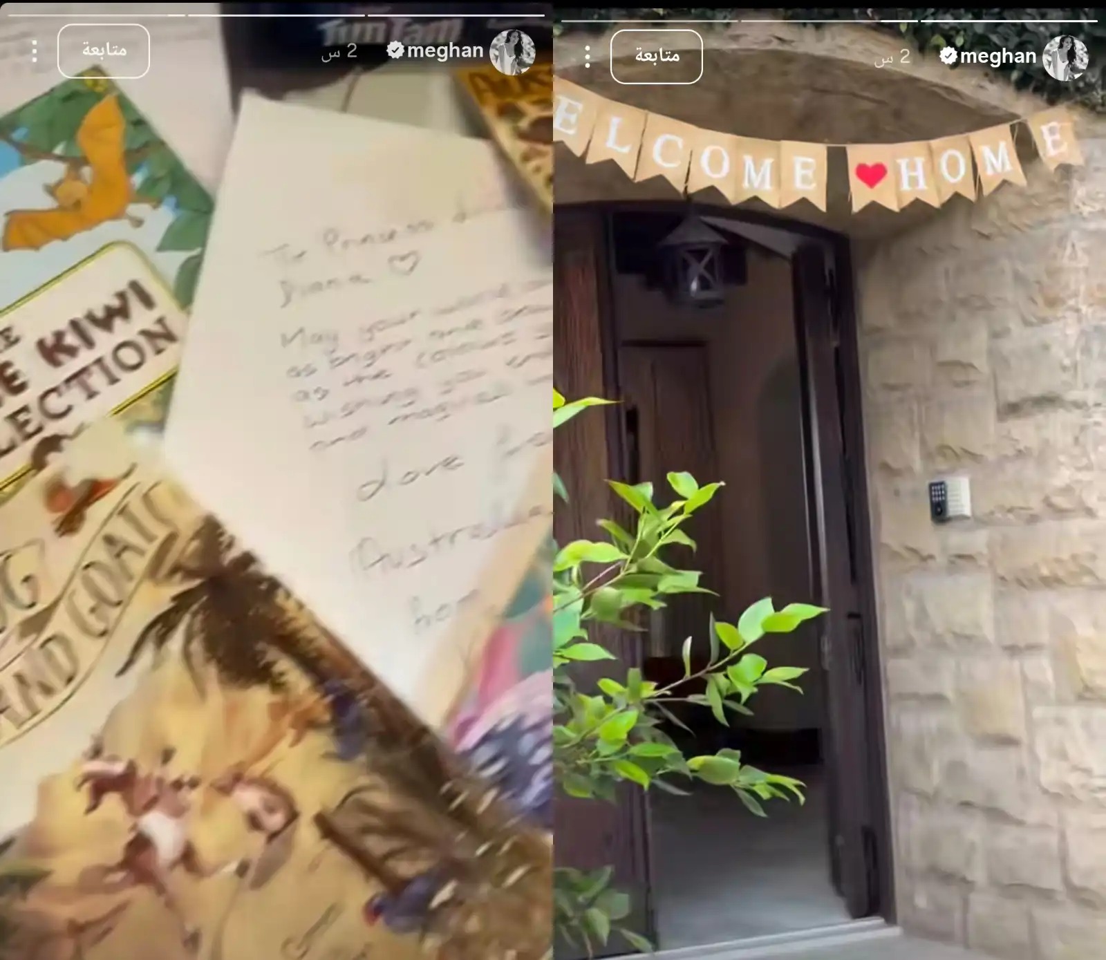 وقامت ميغان بمشاركة لحظات العودة عبر خاصية “الستوري” على حسابها في إنستغرام، حيث ظهرت لافتة ترحيبية عند مدخل المنزل كُتب عليها “Welcome Home”، إلى جانب تجهيزات خاصة أعدت لاستقبالهما.