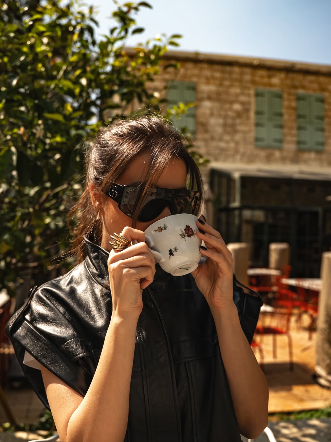 رغم قوة الجلد وغموض النظارات، لم تغب "روح البنات" عن المشهد. نانسي تبدو في الصور وكأنها في "إجازة من التوقعات"، تجمع بين عفوية اللحظة (وهي تحتسي قهوتها) وبين حضورها كأيقونة موضة لا تقبل بالأنماط الجاهزة.