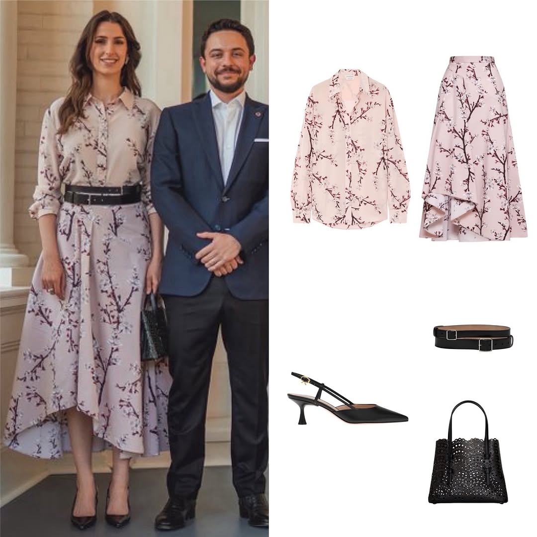 إلى جانب زوجها الأمير الحسين بن عبد الله الثاني، اختارت الأميرة إطلالة عصرية خلال عشاء رسمي في الولايات المتحدة، حيث ارتدت طقماً حريرياً باللون الوردي الجليدي من Alexander McQueen. نسّقت الإطلالة مع حقيبة من Alaïa، وحذاء أنيق من Gianvito Rossi، فيما أضافت الأقراط لمسة ختامية من الرقي الهادئ.