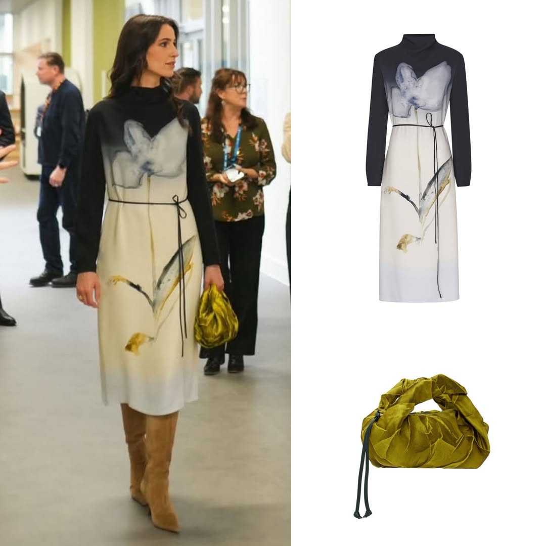 في زيارة إنسانية، تألقت الأميرة بفستان حريري مطبّع من Giada Montenapoleone، بقصّة مستقيمة وياقة عالية تعكس الاحتشام الأنيق. لكن المفاجأة جاءت مع حقيبة صفراء من Dries Van Noten، أضافت جرأة محسوبة إلى لوحة يغلب عليها الهدوء، في توازن دقيق بين الرصانة والتجديد.