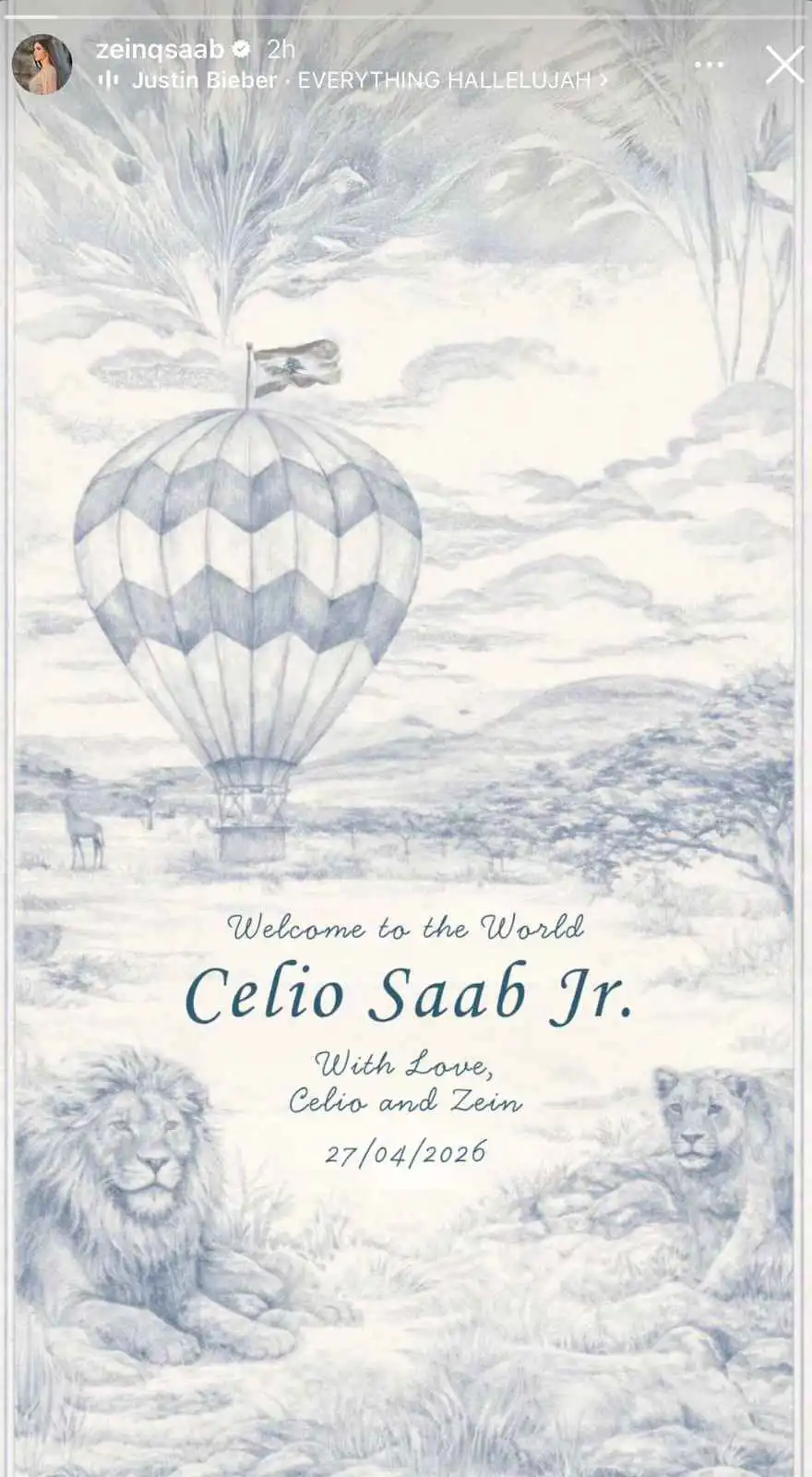 حرص الثنائي سيليو وزين على إبقاء تفاصيل جنس المولود طي الكتمان طوال أشهر الحمل، لتكون ولادة "سيليو جونيور" مفاجأة مميزة لعائلة صعب. وشاركت قطامي عبر خاصية "الستوري" بطاقة تهنئة رقيقة حملت عبارة "أهلاً بك في العالم.. سيليو صعب جونيور"، وهي الصورة التي تم تداولها بشكل واسع عبر منصات التواصل الاجتماعي، حيث توالت رسائل التهنئة والمباركات من كبار نجوم الفن والمجتمع الذين تمنوا للمولود حياة سعيدة في كنف عائلته.