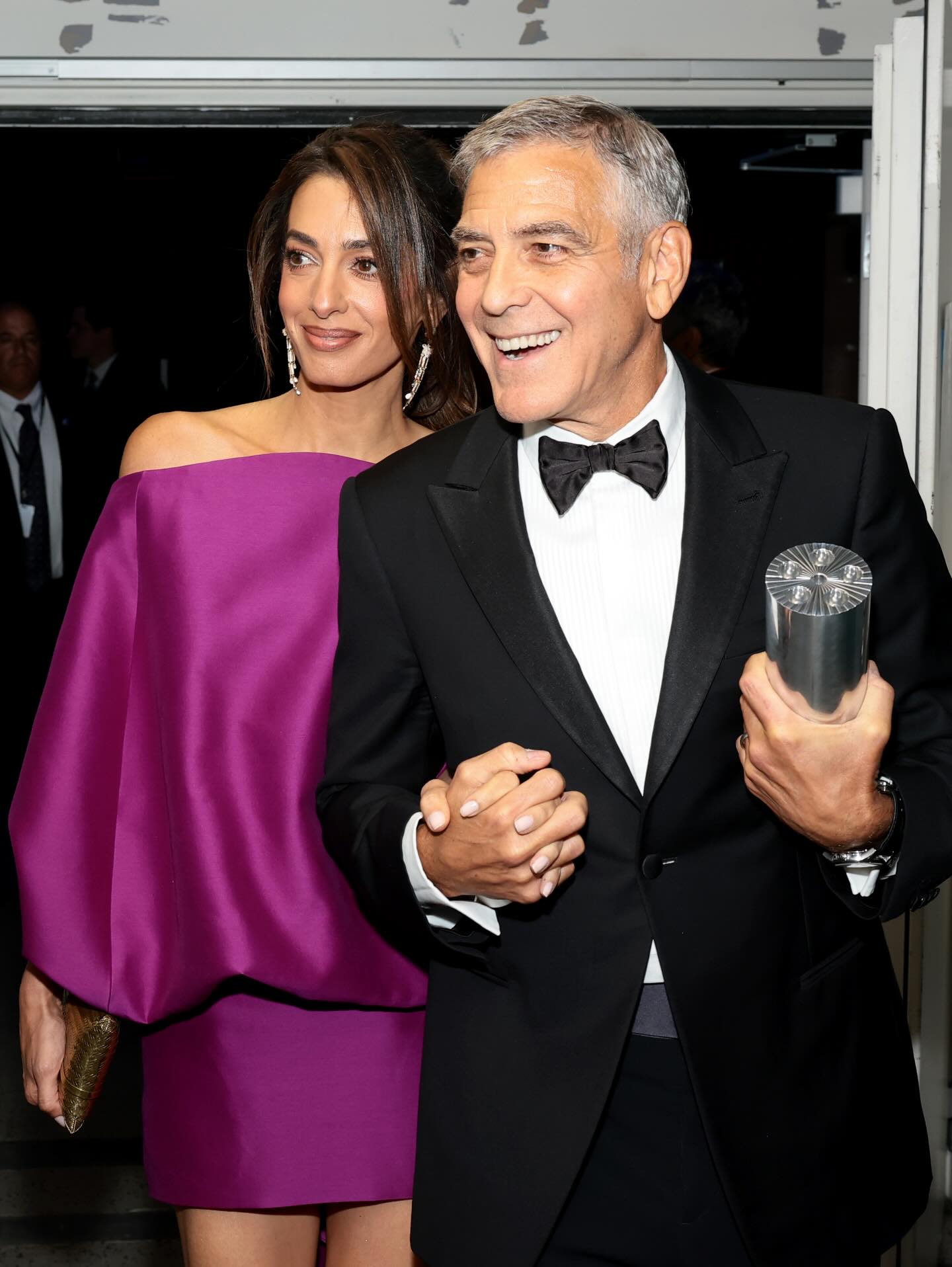 أطل جورج كلوني، الذي تم تكريمه خلال الحفل، بأناقة كلاسيكية لا تنتهي موضتها، مرتدياً بدلة توكسيدو سوداء مصممة بعناية مع ربطة عنق سوداء، مما أبرز جاذبيته المعهودة.